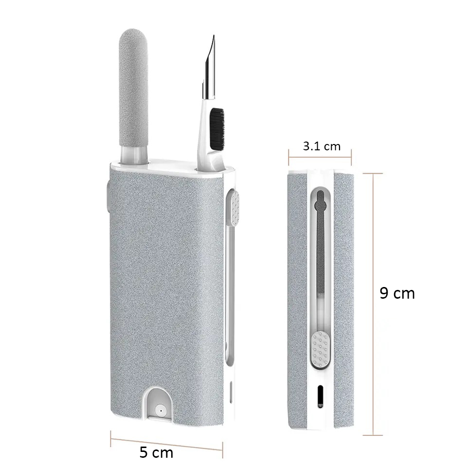 *Q8 Cleaner Kit Multifunctional Earbud Cleaning Pen Dusting Brush Bluetooth Compatible Headset Case Phone Cleaning Tool with Spray Nozzle Grey.
