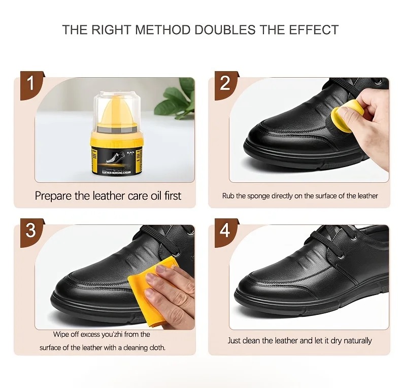 Versatile Usage: Our Shoe Cream provides multipurpose solution to restore a variety of leather items like shoes, boots, purses, tool bags, sofas, furniture, and couches. Perfect for repairing car upholstery, workplace chairs, belts or jackets, and giving them a renewed and refreshed look.