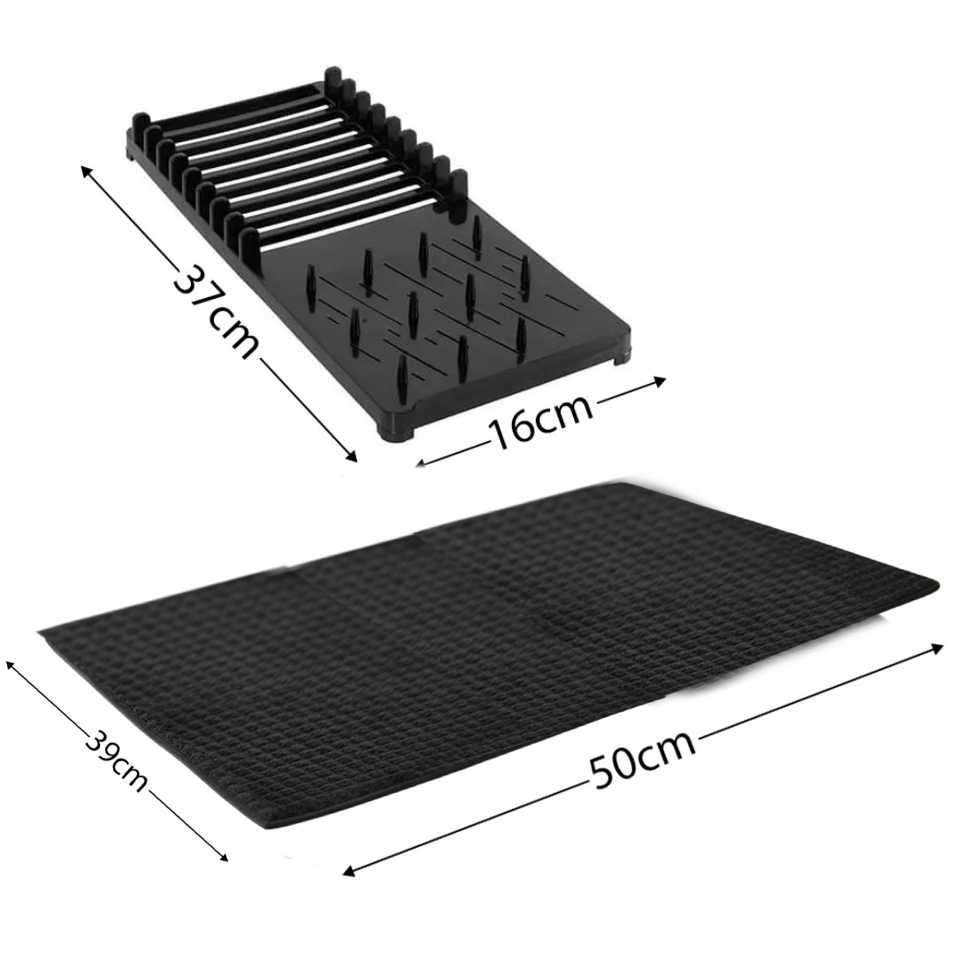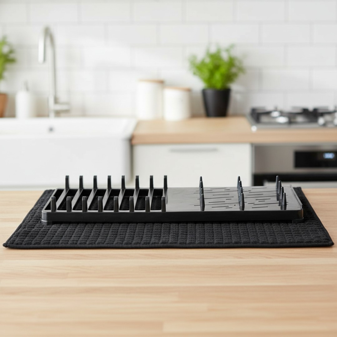 Absorbent Drying Mat: Comes with a large, soft microfiber mat that quickly absorbs excess water, keeping countertops dry and protected from spills.