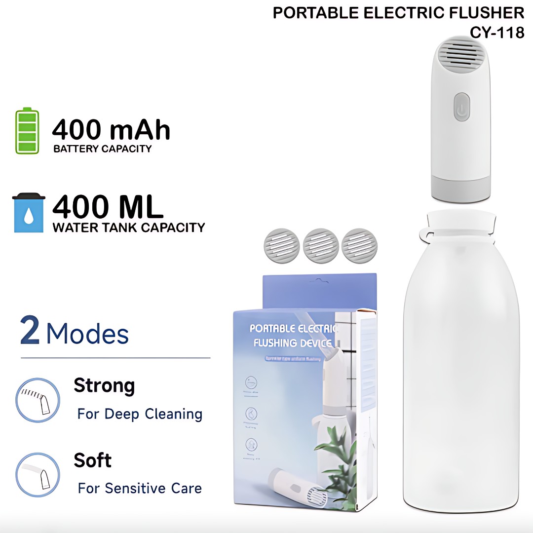 Portable Hygienic Flushing System: Designed for personal hygiene, this portable electric flusher provides gentle and effective water cleaning, ideal for toilets, travel, camping, and daily personal care.