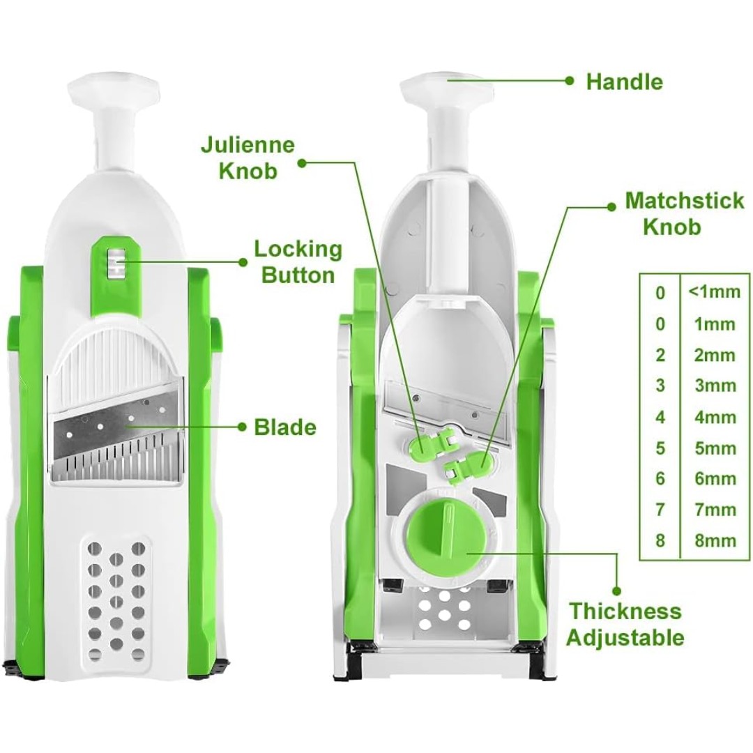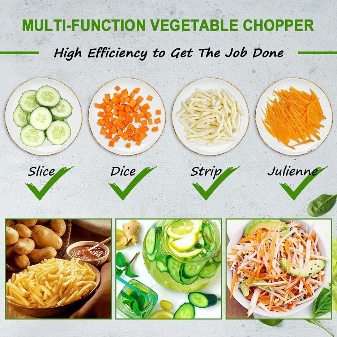 Multi-Function Slicing & Grating: Ideal for slicing, shredding, and grating a variety of vegetables and fruits such as potatoes, cucumbers, carrots, tomatoes, and cheese.