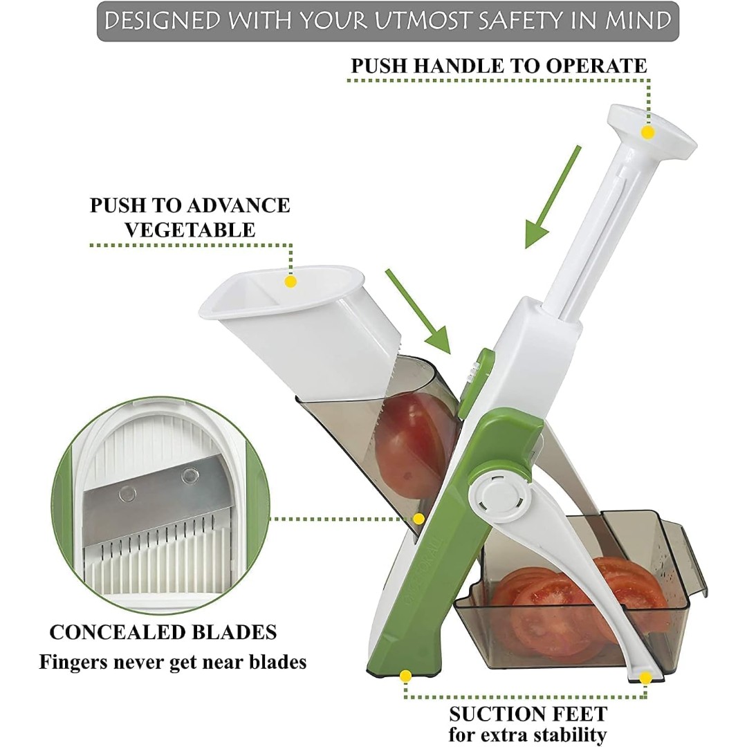 Push-Handle Lever Operation: Ergonomic push handle allows smooth downward pressure to slice vegetables effortlessly with better control and less hand strain.