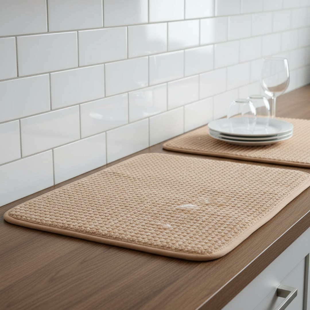 Highly Absorbent Microfiber Surface: Designed to quickly absorb water from dishes, glasses, and cookware, keeping countertops dry and clean.