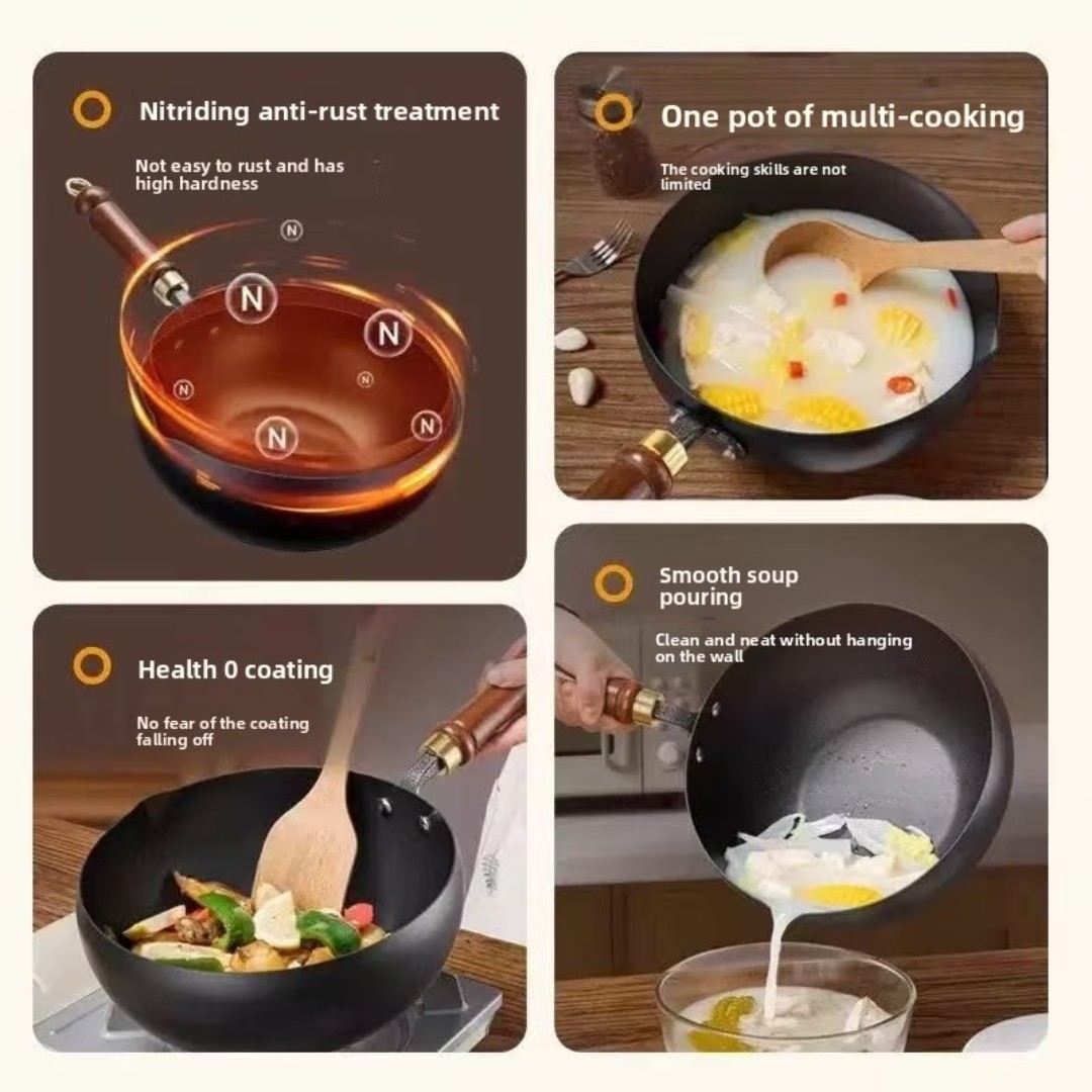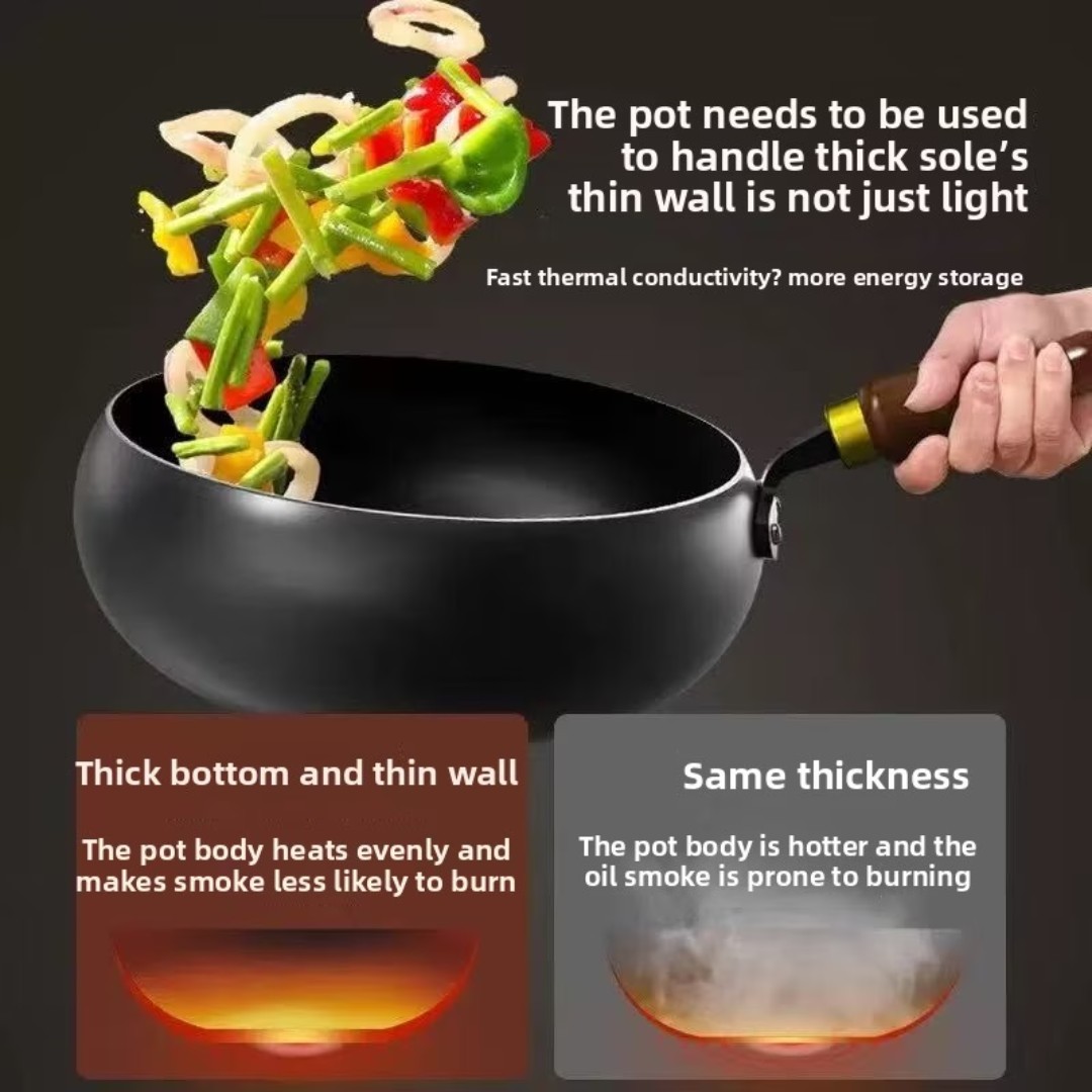 Deep Bowl-Shaped Design: Generous depth is ideal for stir-frying, sautéing, deep frying, and preparing soups without splashing.