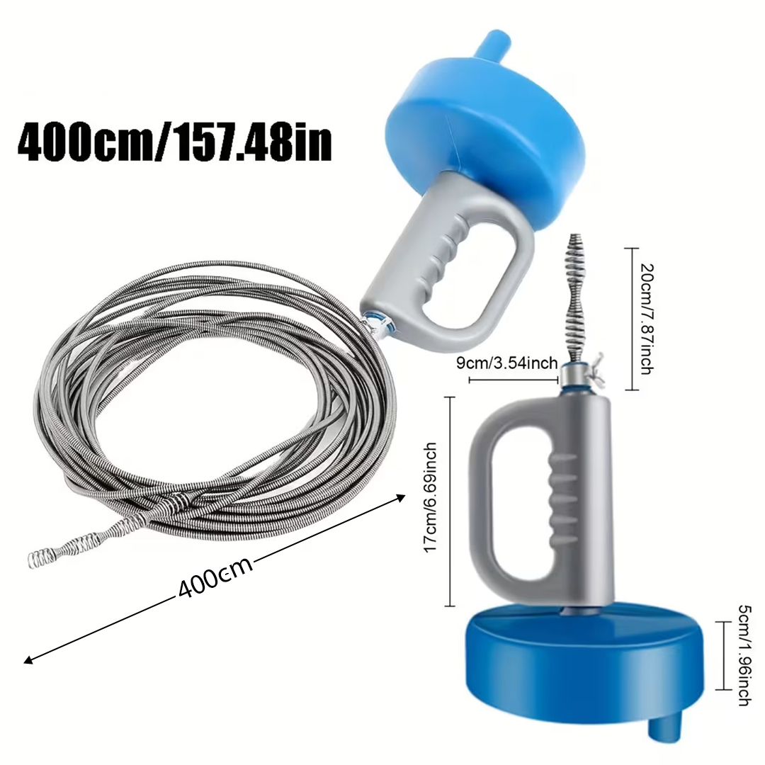Extended 4-Meter Reach: Long 400 cm cable allows effective cleaning of sinks, showers, bathtubs, and floor drains without disassembly.