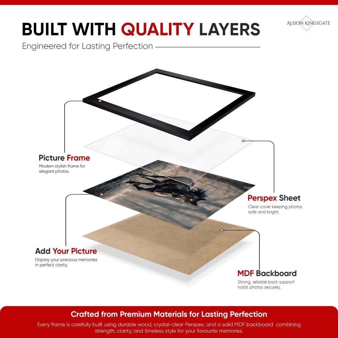 Crystal-Clear Perspex Cover: Equipped with a clear Perspex sheet that protects photos from dust while maintaining excellent clarity and brightness.