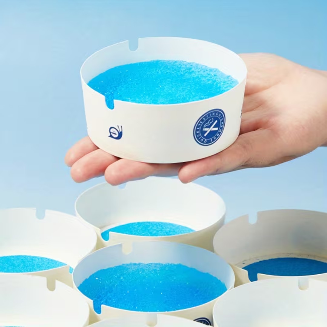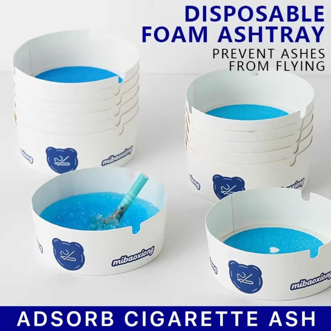 Disposable Absorbent Ashtray Design: Single-use ashtrays filled with absorbent granules that safely trap cigarette ash and liquid waste.