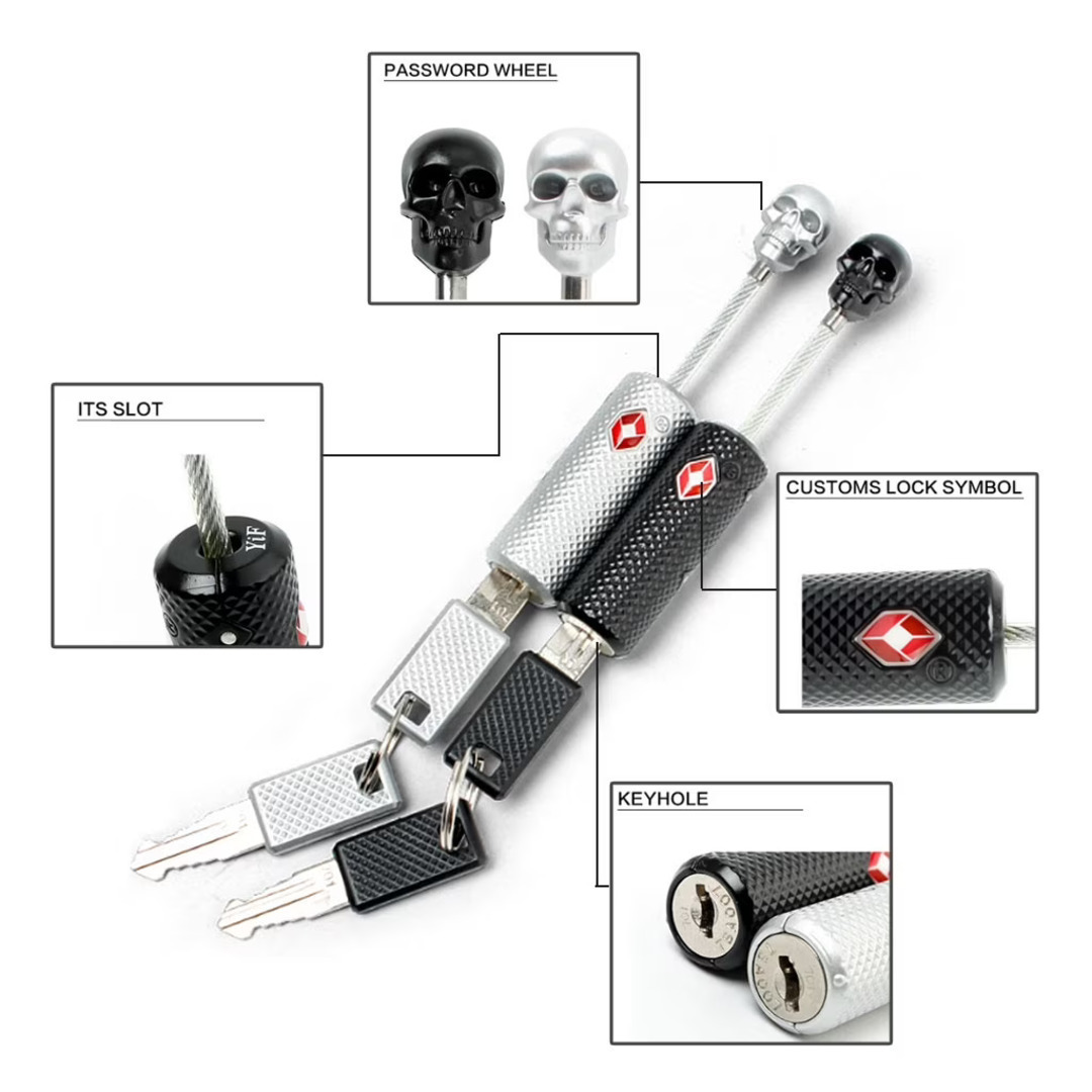 هيكل سلك فولاذي متين: يحتوي على كابل من الفولاذ المقاوم للصدأ قوي ومرن، مقاوم للقطع أو العبث، مع سهولة الاستخدام لتأمين الحقائب وحقائب السفر.