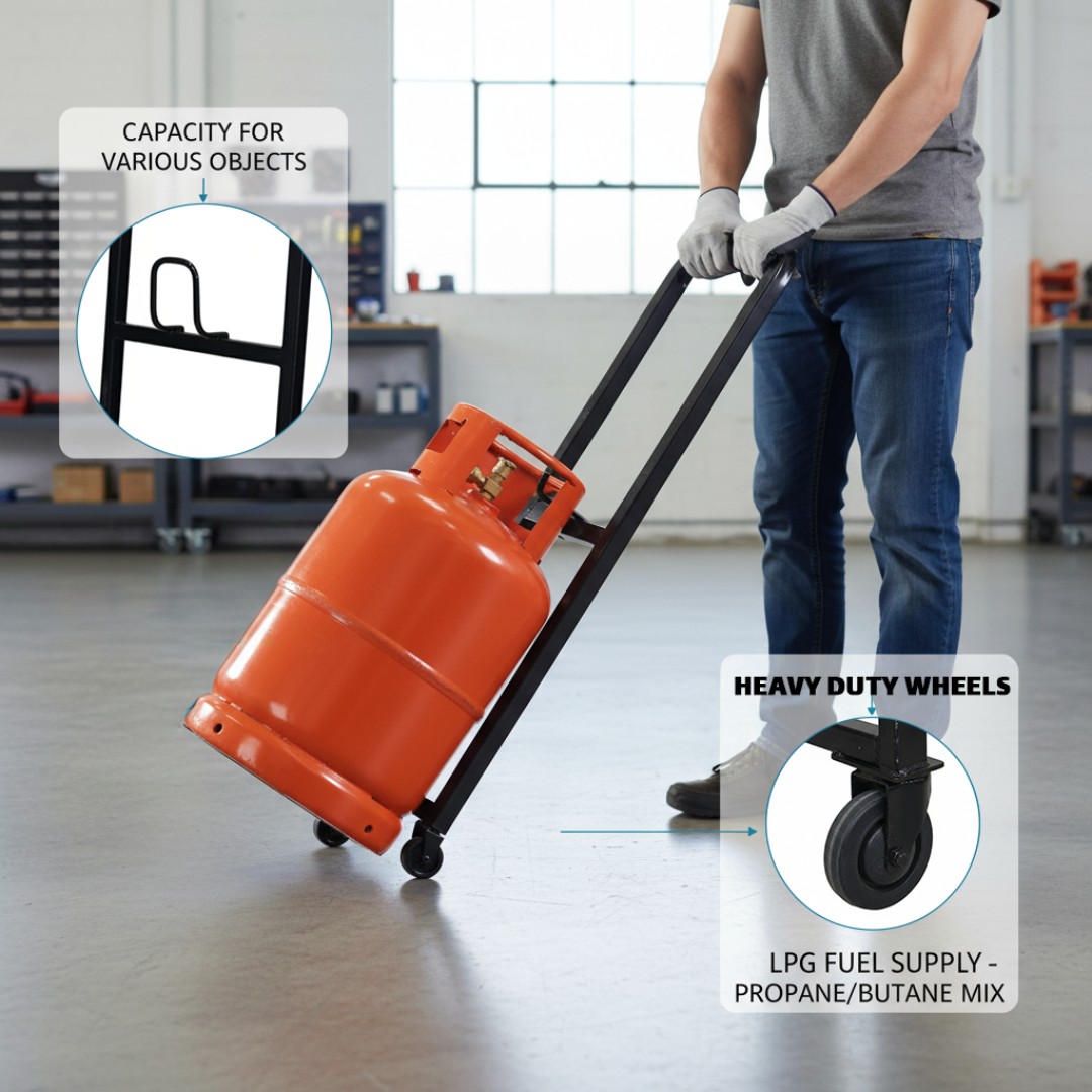 Heavy-Duty Steel Construction: Built with a strong, durable steel frame designed to safely support and transport gas cylinders and other heavy objects up to 50kgs.