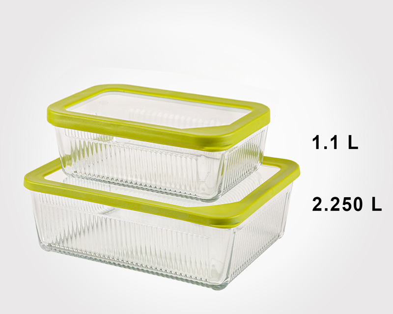 This glass container set offers three convenient sizes: 450 ml, 1.1 liters, and 2.25 liters, each available in four vibrant colors - yellow, orange, green, and red