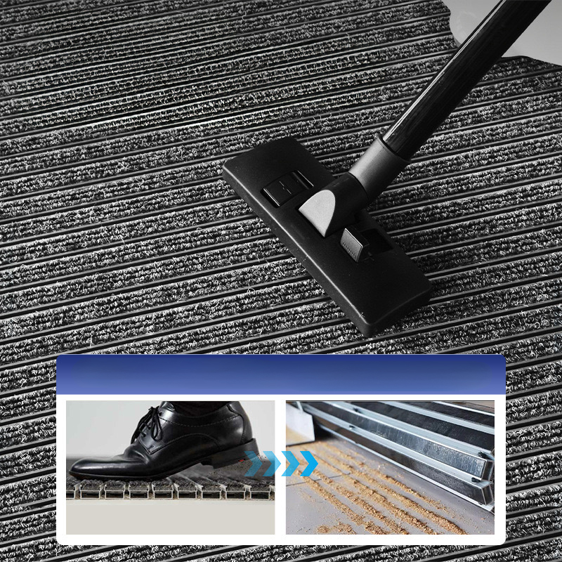 The floor mat adopts aluminum alloy frame, not deformed for a long time, and the carpet surface is resistant to dirt and abrasion.