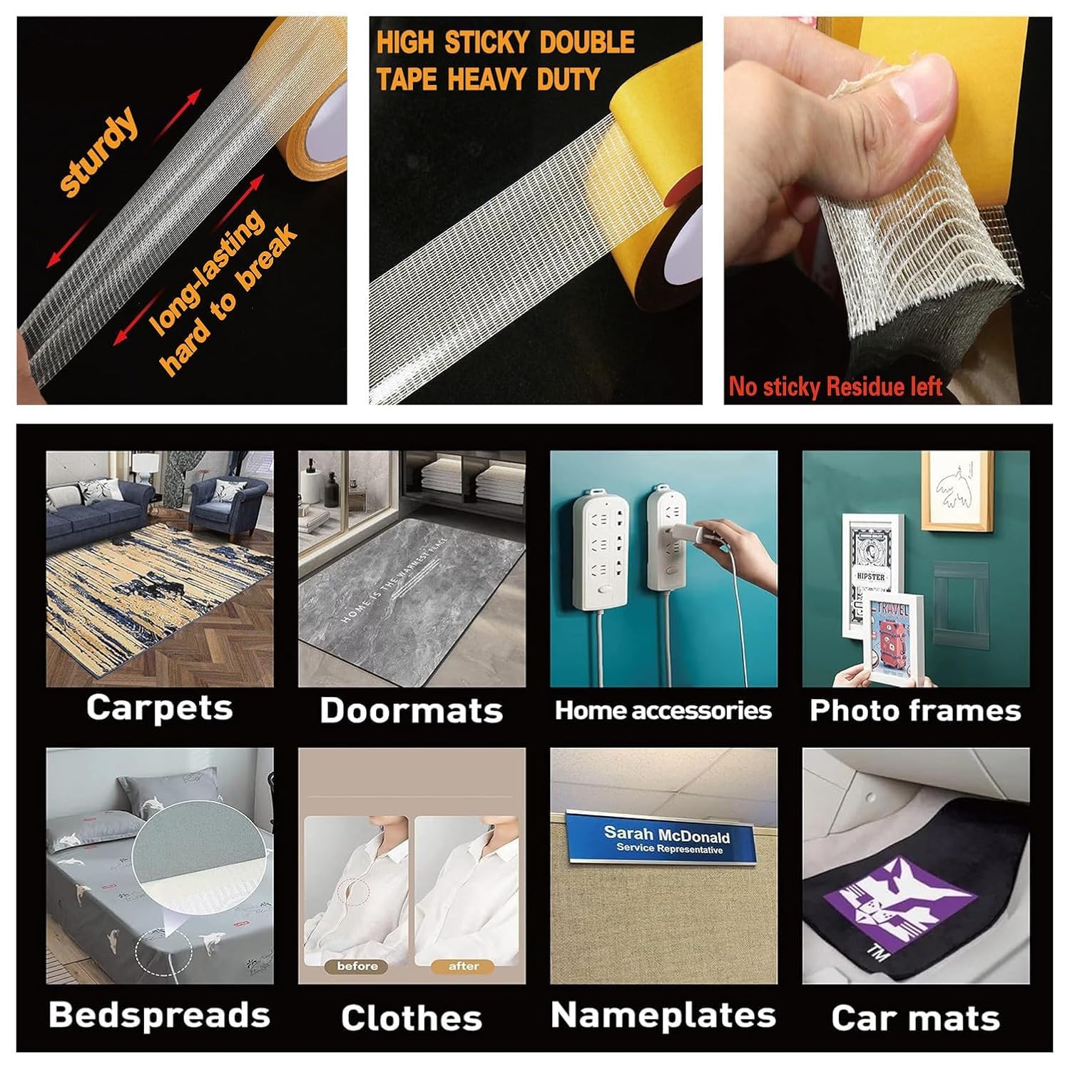 - Works on Various Surfaces: Ideal for use on wood, tiles, vinyl, carpet, and more, this tape is perfect for securing rugs, stair treads, mats, or runners and is great for home repairs and craft projects.