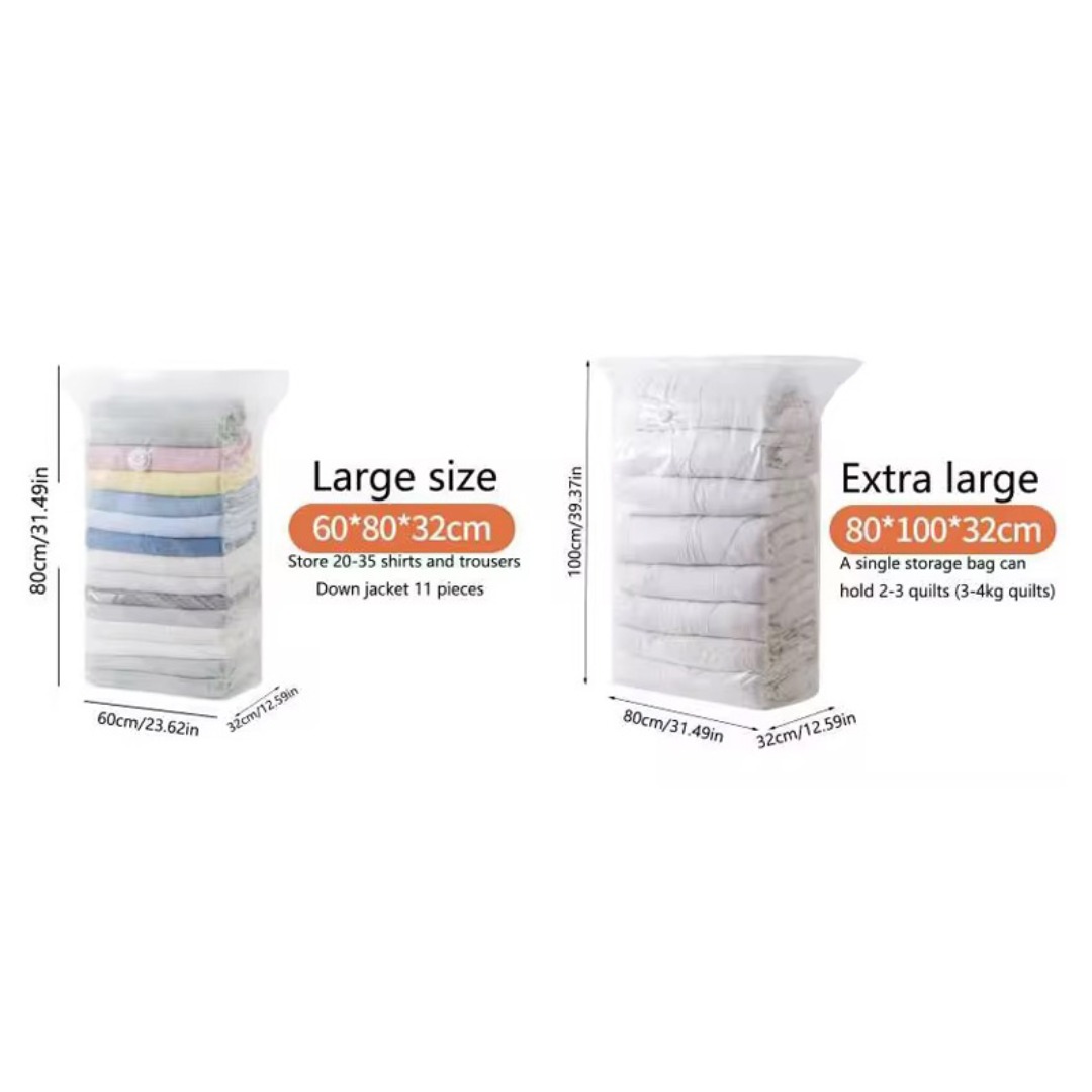 Multiple Sizes Available: Available in different sizes, from large (60×80 cm) to extra-large (80×100 cm), to accommodate various storage needs, whether it's clothes, quilts, or jackets.