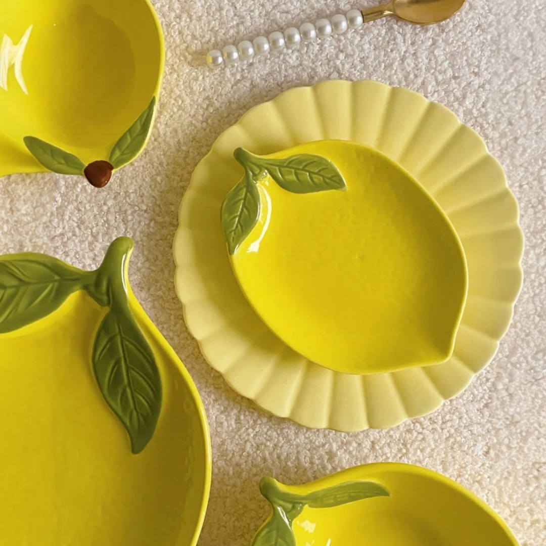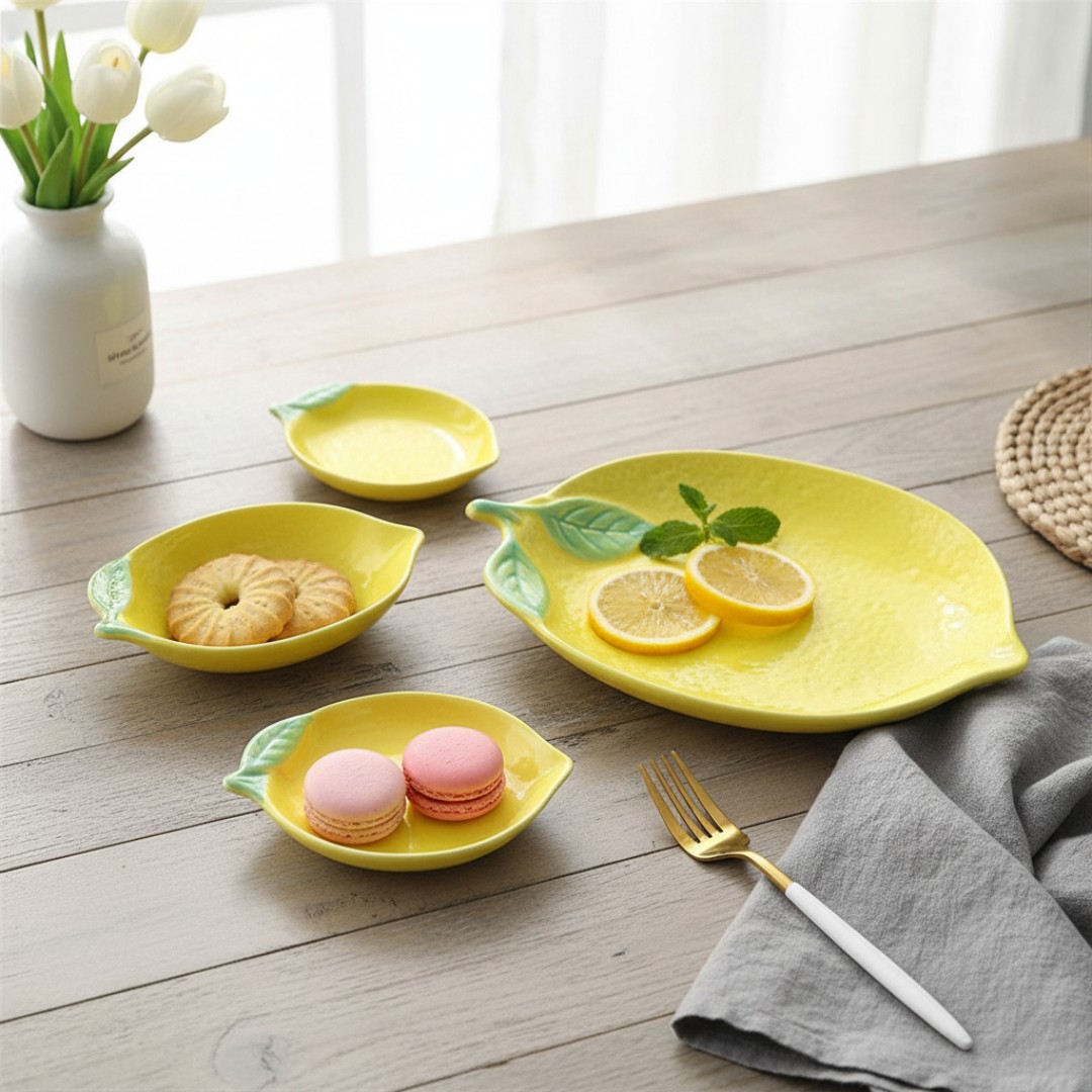 Charming Lemon-Inspired Design: Bright lemon shape with textured details and leaf accents adds a fresh, cheerful touch to any table setting.