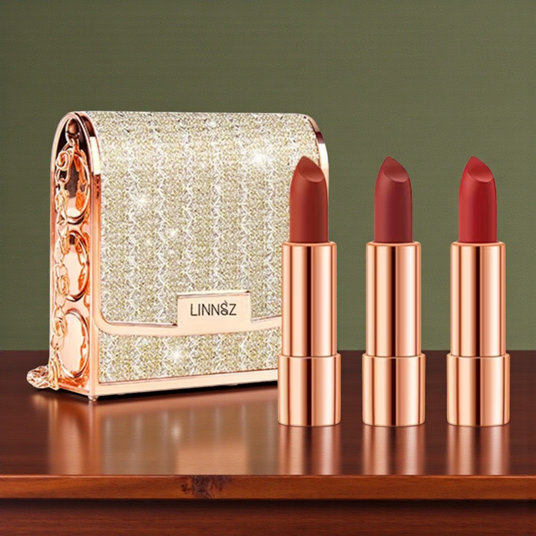 Premium Triple Lipstick Gift Set: Includes three richly pigmented lipsticks presented in an elegant matching set, perfect for daily wear or special occasions.