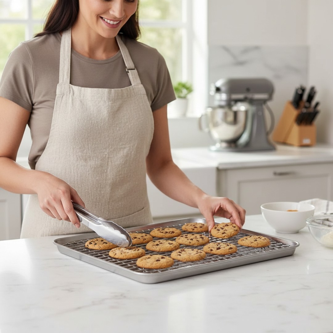 Baking Tray with Cooling Rack Set: Includes a sturdy baking sheet and raised wire rack for even heat circulation, perfect for baking, roasting, and cooling.