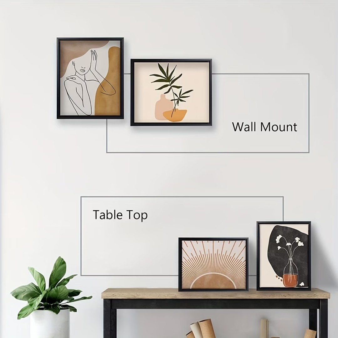 Versatile Display Options: Designed with hanging hardware for vertical or horizontal wall mounting, plus a rear stand for tabletop display.