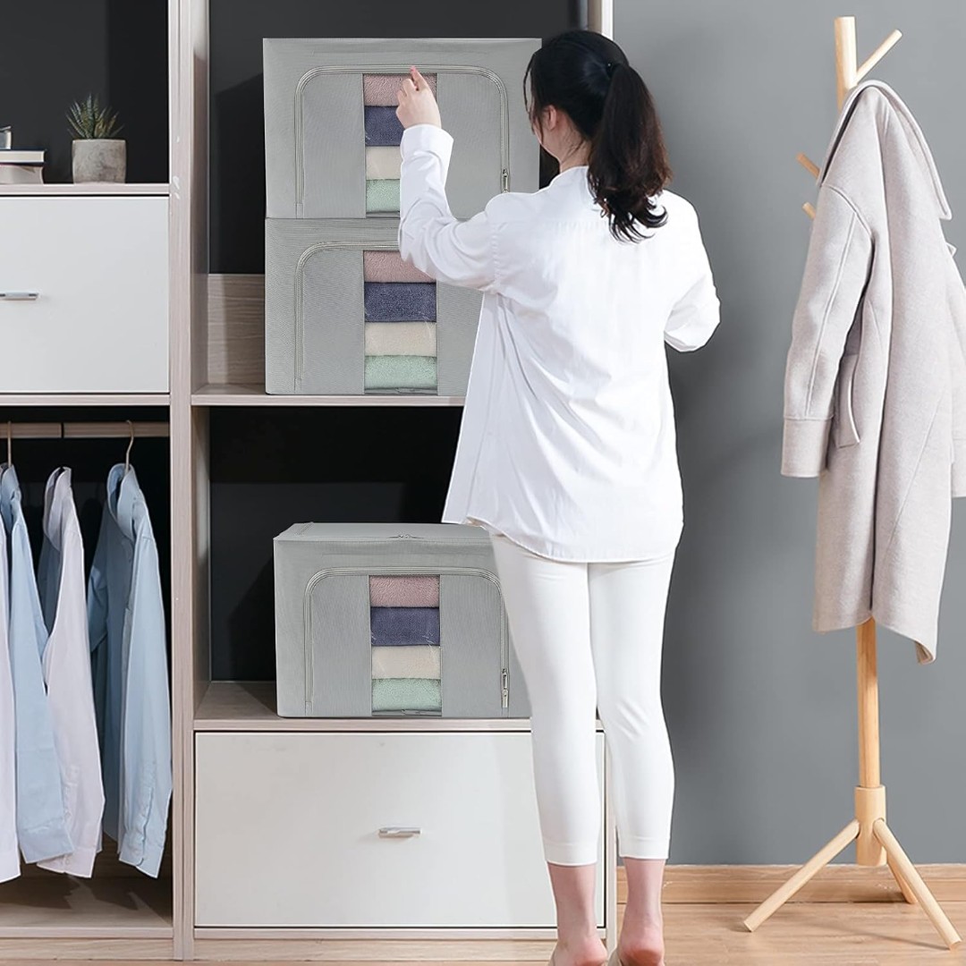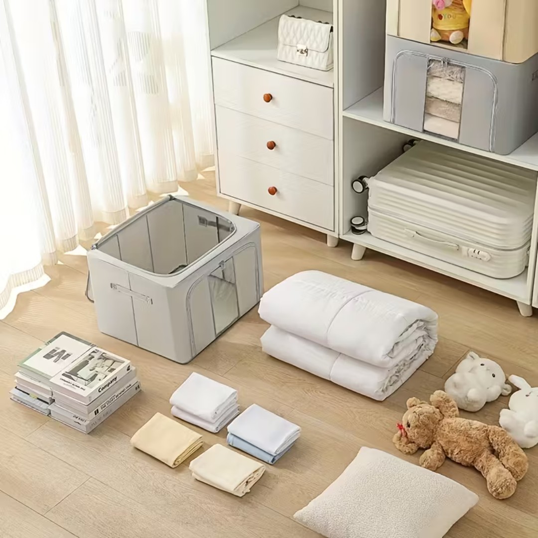 Large 66L Storage Capacity: Generous size ideal for storing blankets, quilts, clothes, towels, toys, and seasonal items in an organized manner.
