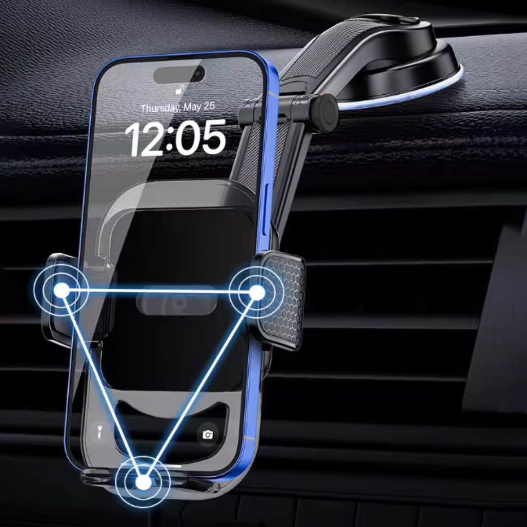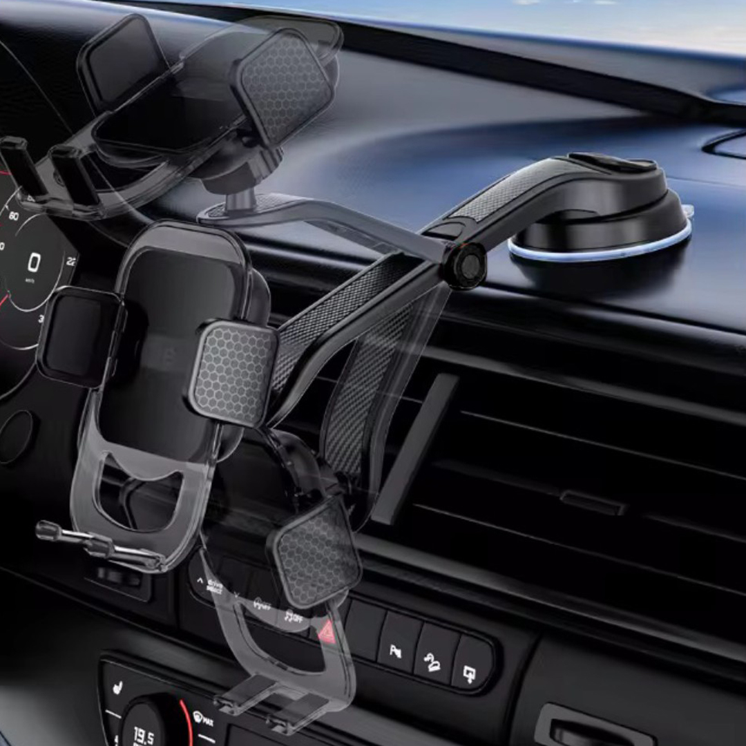 Strong Suction Cup Mount: Powerful vacuum suction firmly attaches to the dashboard or windshield, ensuring stable support even on bumpy roads.