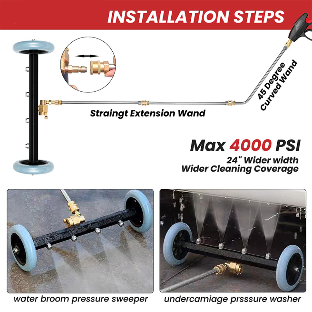High-Pressure Undercarriage Cleaning System: Designed to deliver powerful, evenly distributed water jets that effectively remove dirt, mud, and grime from vehicle undercarriages, driveways, and floors.