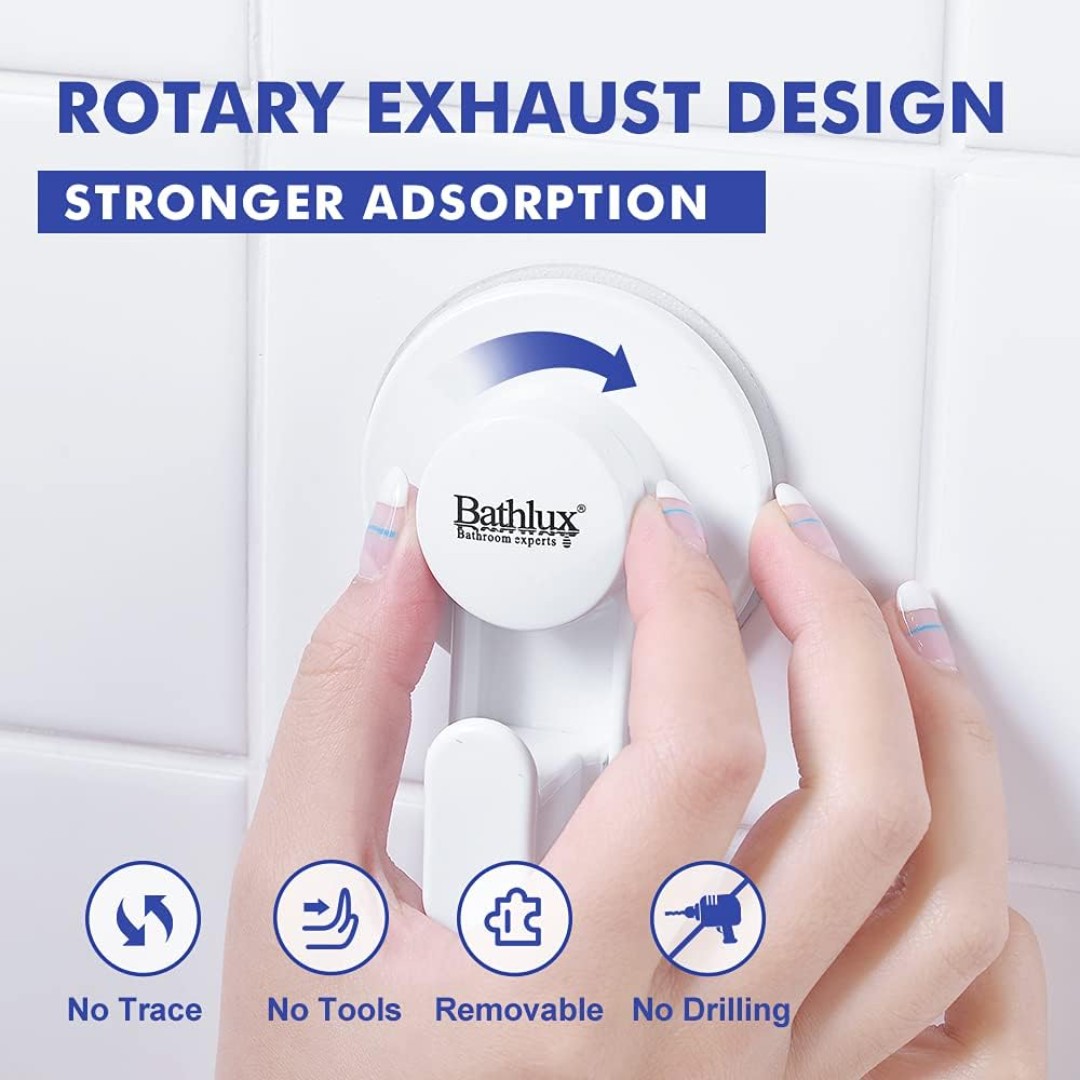 Strong Suction Cup Mount: Features a powerful vacuum suction system that firmly attaches to smooth surfaces like tiles, glass, and metal without slipping.