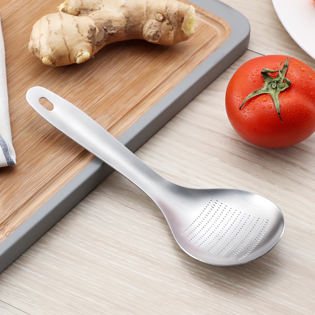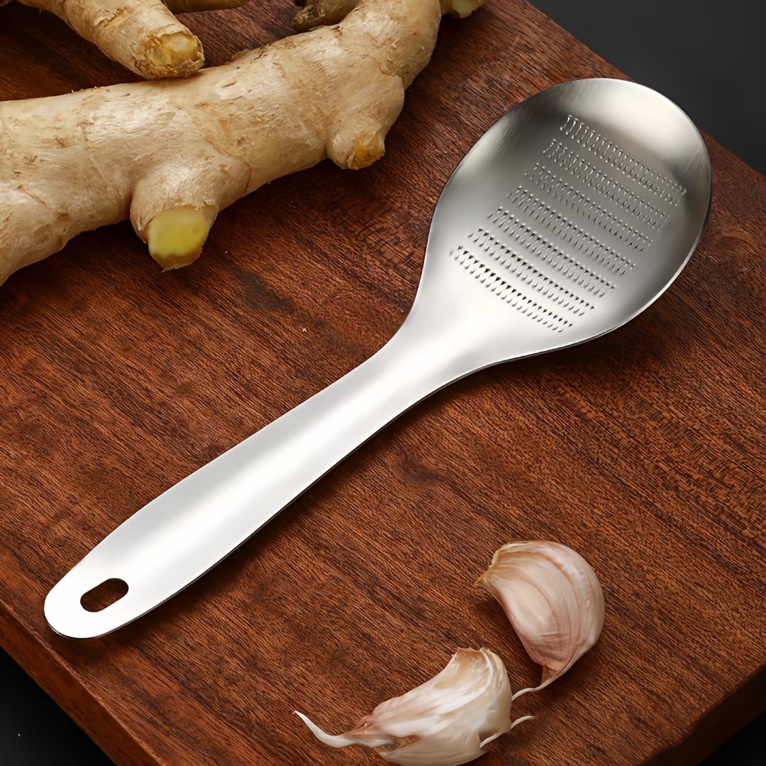 Integrated Grater Spoon Design: Features fine raised grating teeth on the spoon surface, ideal for grating ginger, garlic, and spices directly while collecting paste neatly.