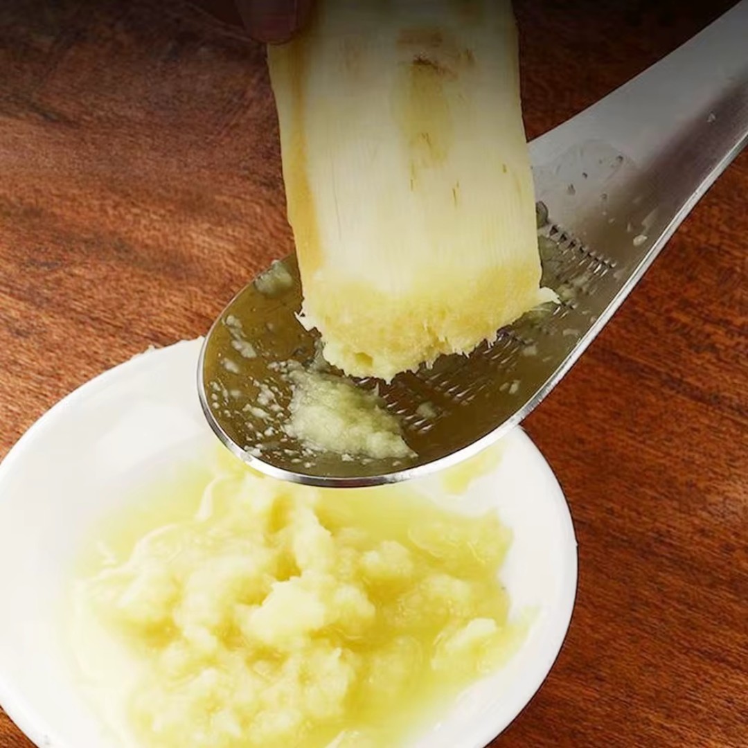 Integrated Grater Spoon Design: Features fine raised grating teeth on the spoon surface, ideal for grating ginger, garlic, and spices directly while collecting paste neatly.
