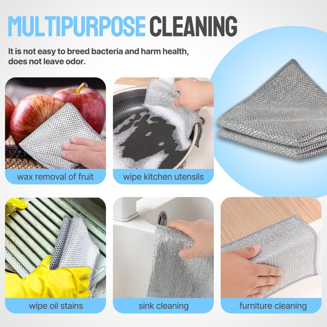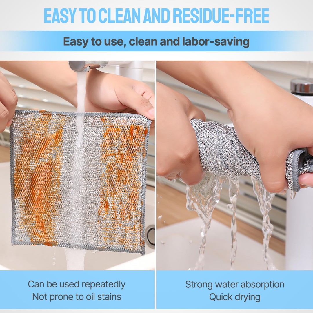 High-Quality Silver Wire Fabric: Made from durable silver-coated polyester wire combined with recycled cellulose fiber for strong cleaning performance without rusting.