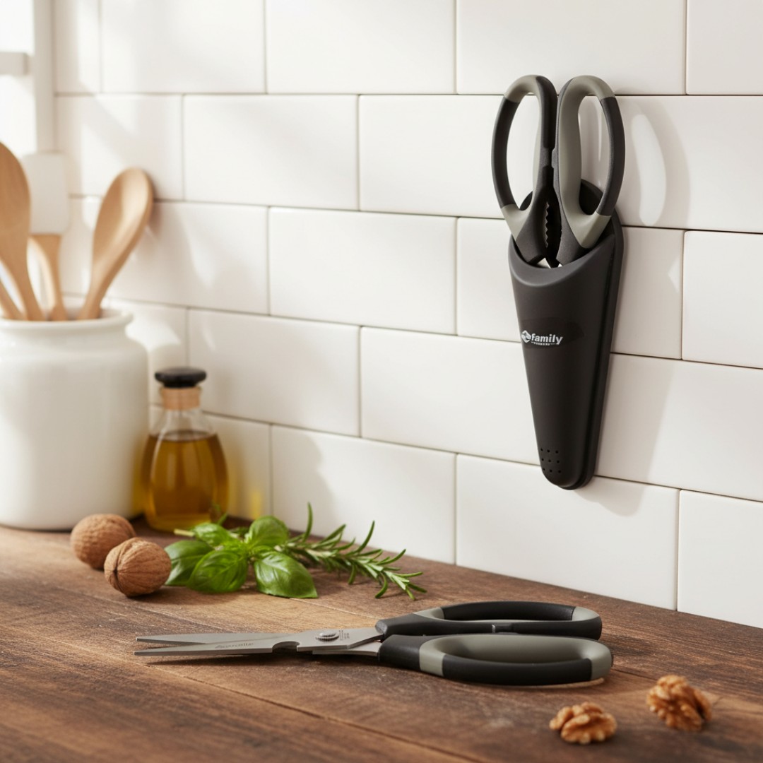 Practical & Space-Saving Design: Compact size with ventilation holes for hygiene, ideal for modern kitchens, keeping scissors clean, accessible, and neatly stored.