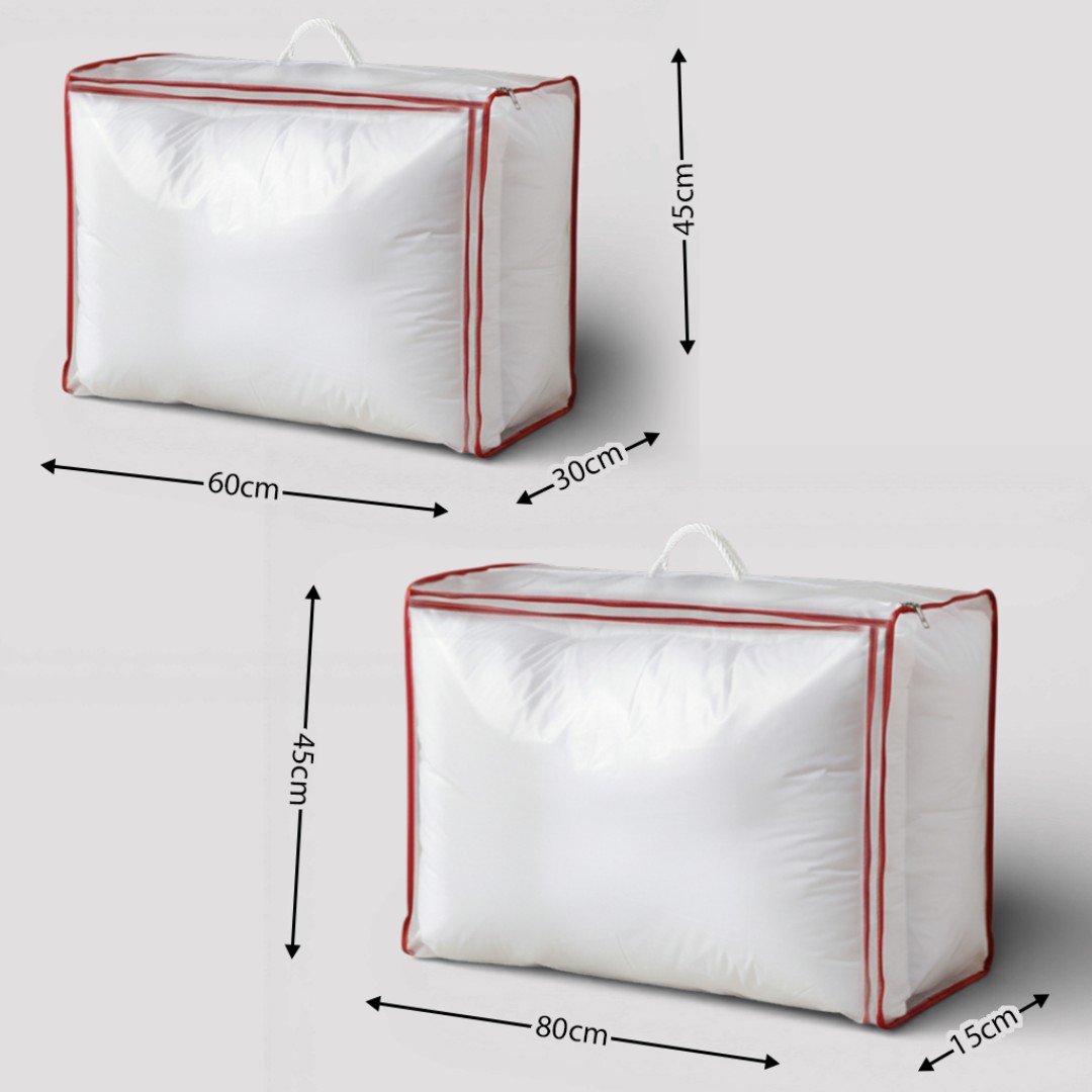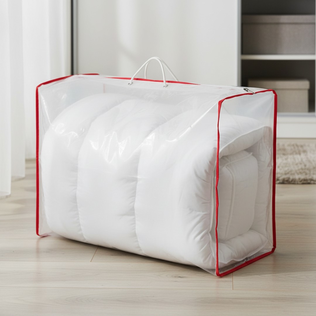 DURABLE WATERPROOF MATERIAL: Made from high-quality transparent plastic that protects blankets, pillows, and clothes from dust, moisture, and dirt for long-term storage.