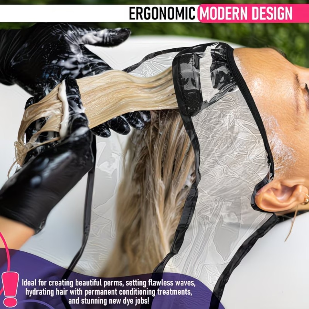 WATERPROOF PROTECTIVE HAIR CAPE: Designed to shield hair, skin, and clothing from oils, lotions, dyes, face masks, and water during beauty treatments or grooming.