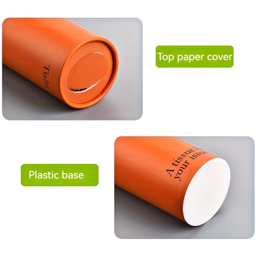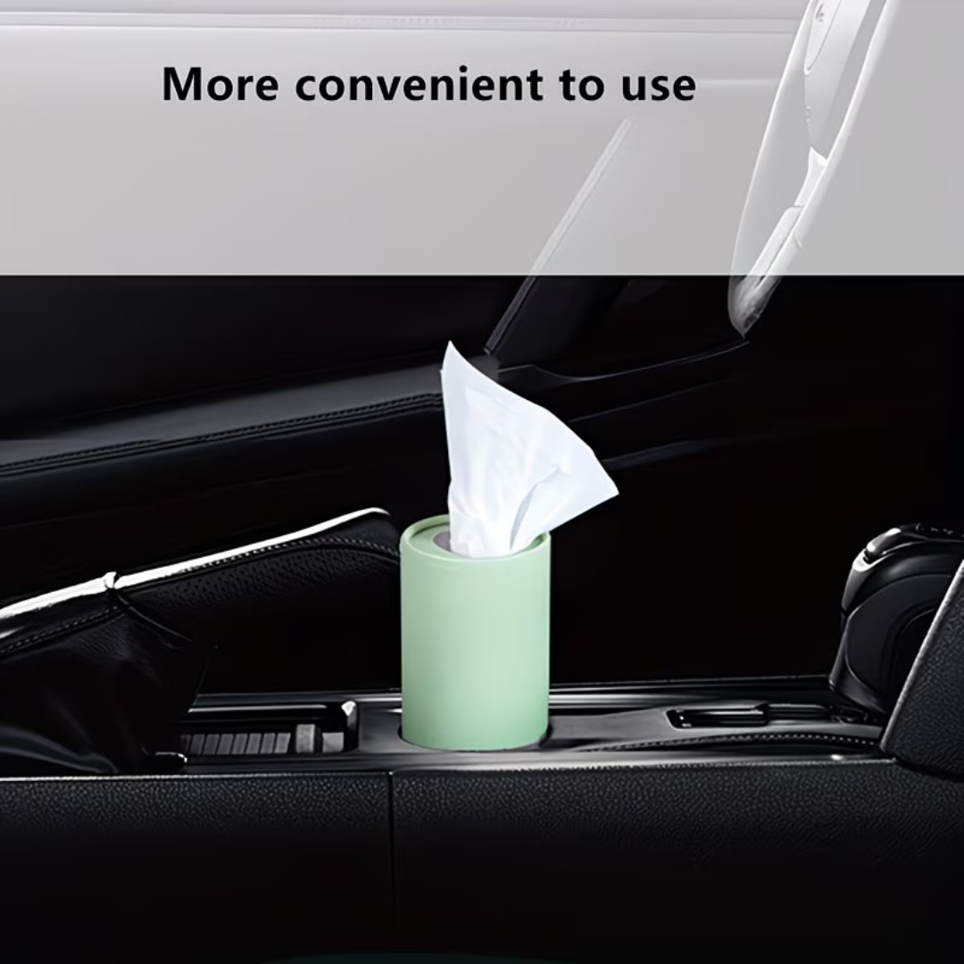 Portable Cylindrical Tissue Holder: Compact vertical design keeps tissues neatly stored and easy to pull out, making it perfect for travel, cars, offices, and bedside use.