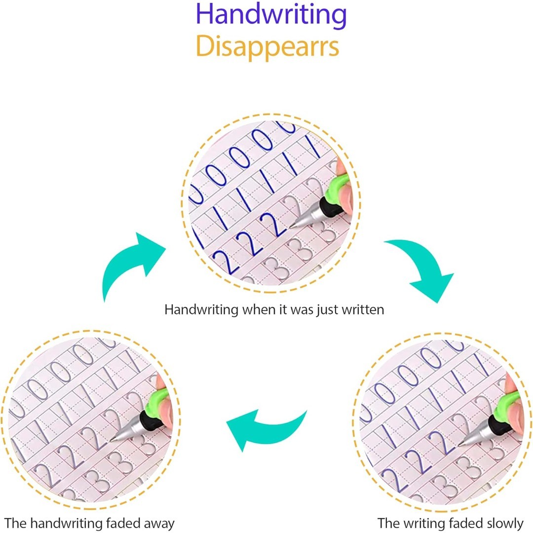 MAGIC REUSABLE HANDWRITING PRACTICE: Special disappearing ink technology allows children to practice writing repeatedly as the text fades automatically after a short time.