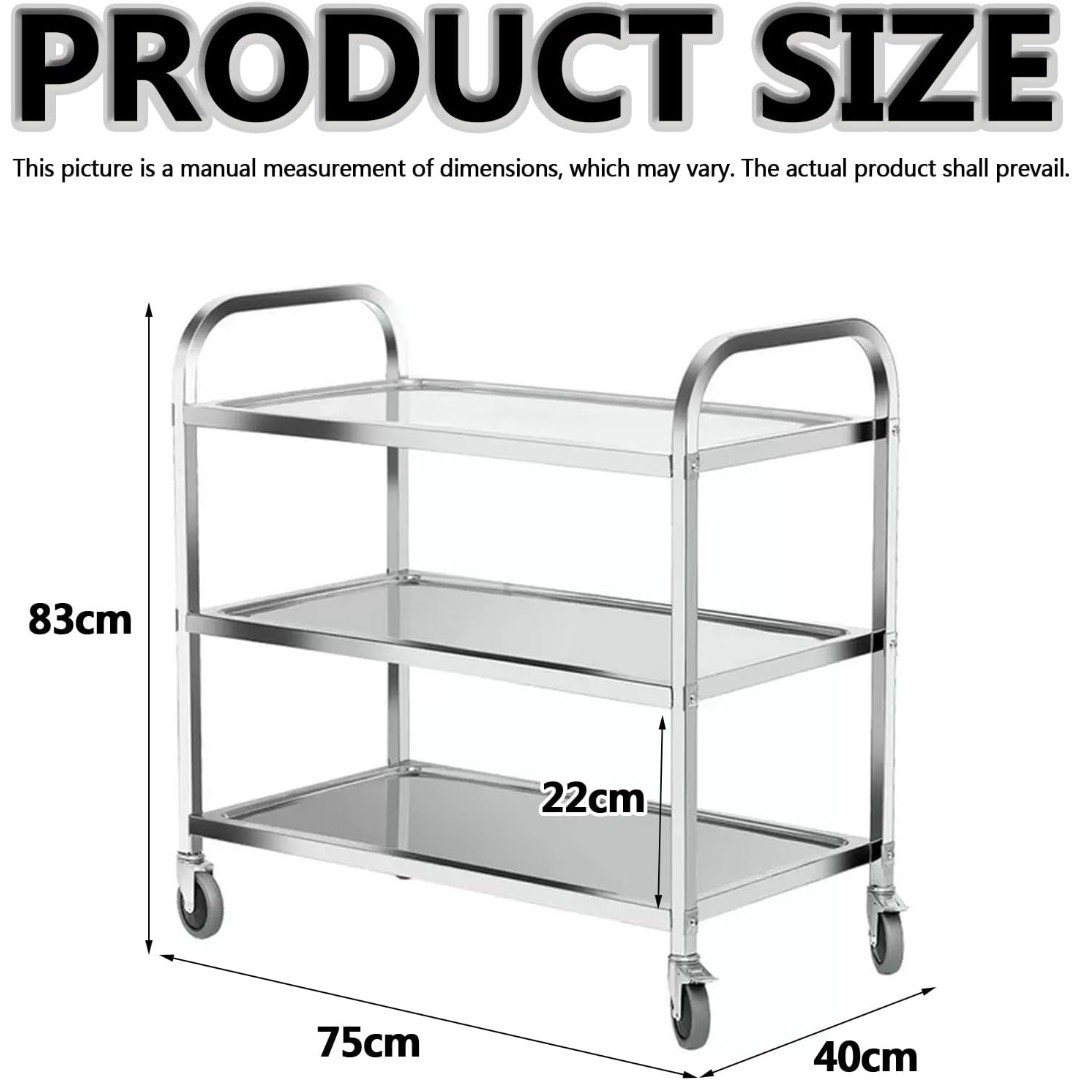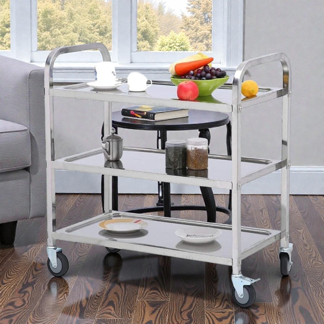 THREE-TIER SPACIOUS STORAGE DESIGN: Large multi-level shelves provide ample space for serving food, storing kitchen items, organizing supplies, or transporting dishes efficiently.