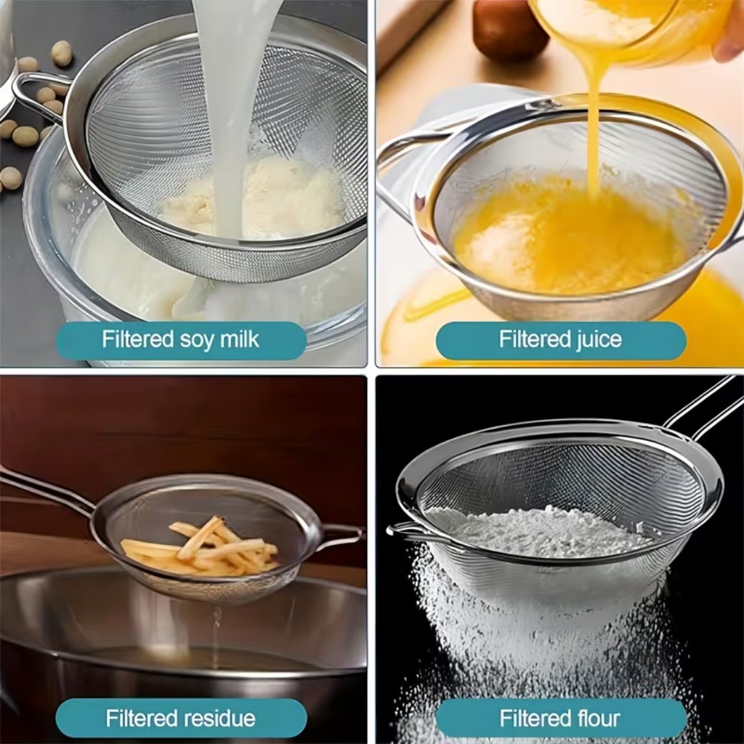 Fine Mesh Precision Filtering: The tightly woven mesh effectively filters liquids and fine ingredients like flour, juice, soy milk, and powders while preventing small particles from passing through.