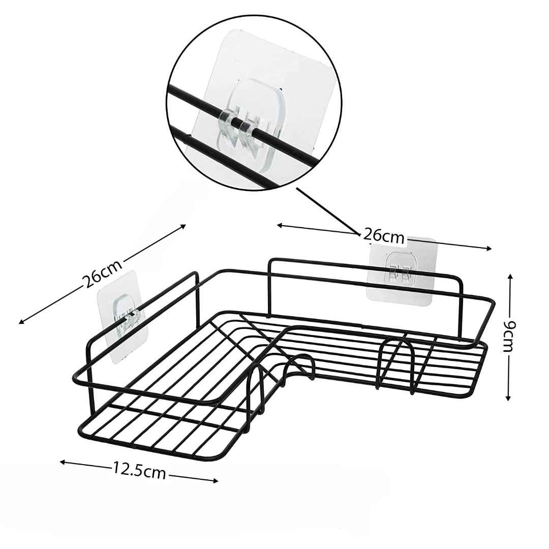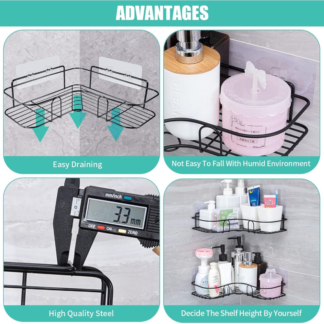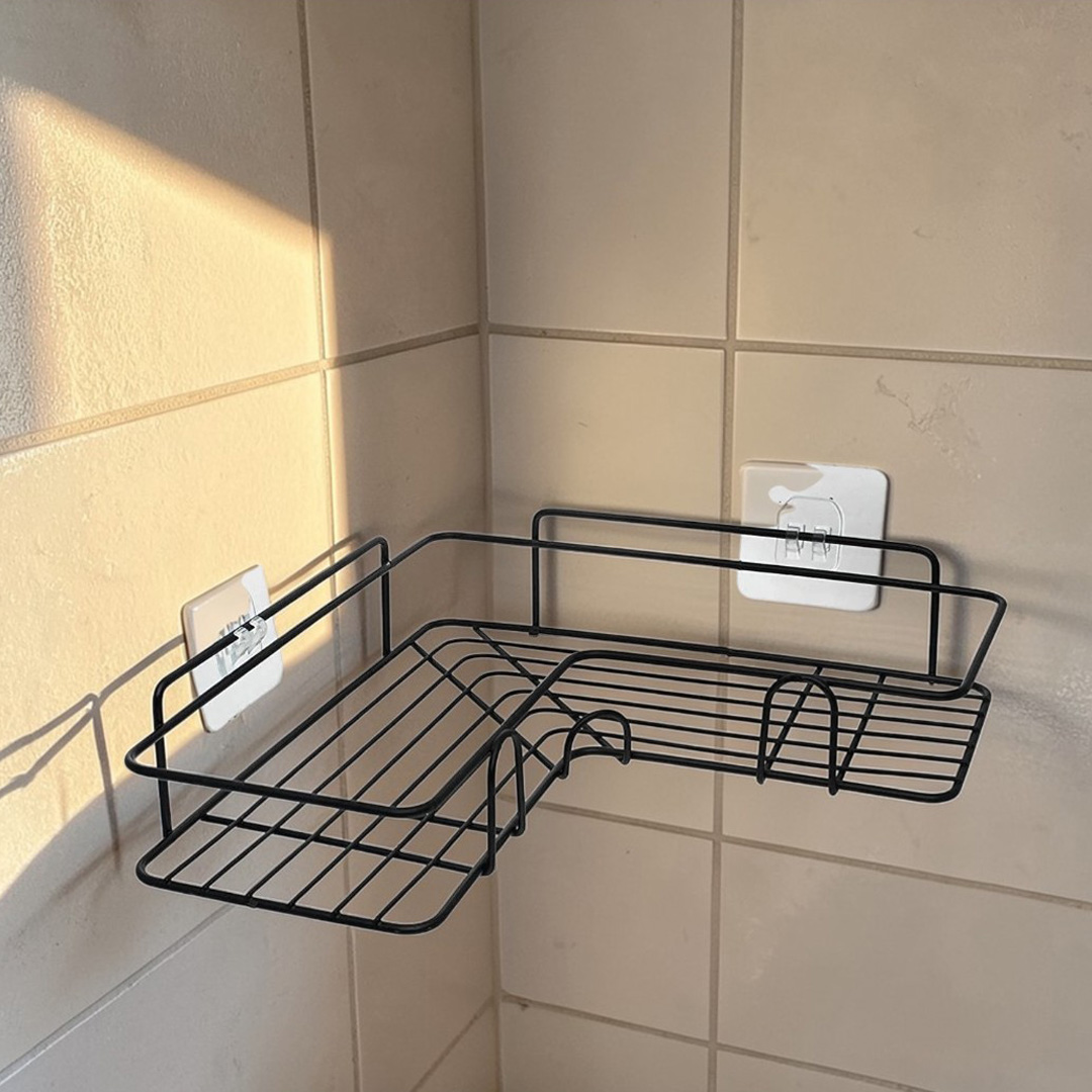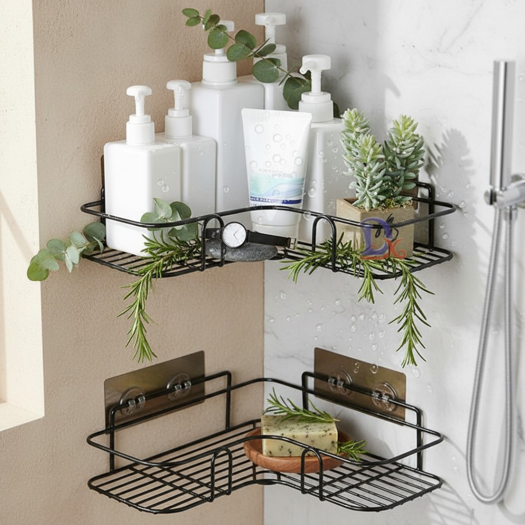Corner Wall Storage Shelf: Designed to fit perfectly in bathroom or kitchen corners, providing a practical storage solution for organizing shampoo, soap, skincare products, and other essentials while saving space.
