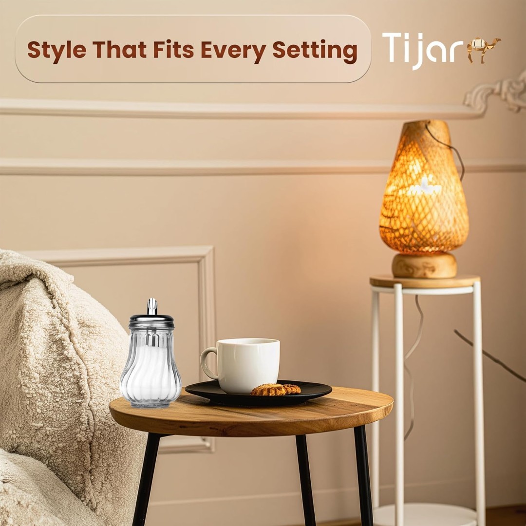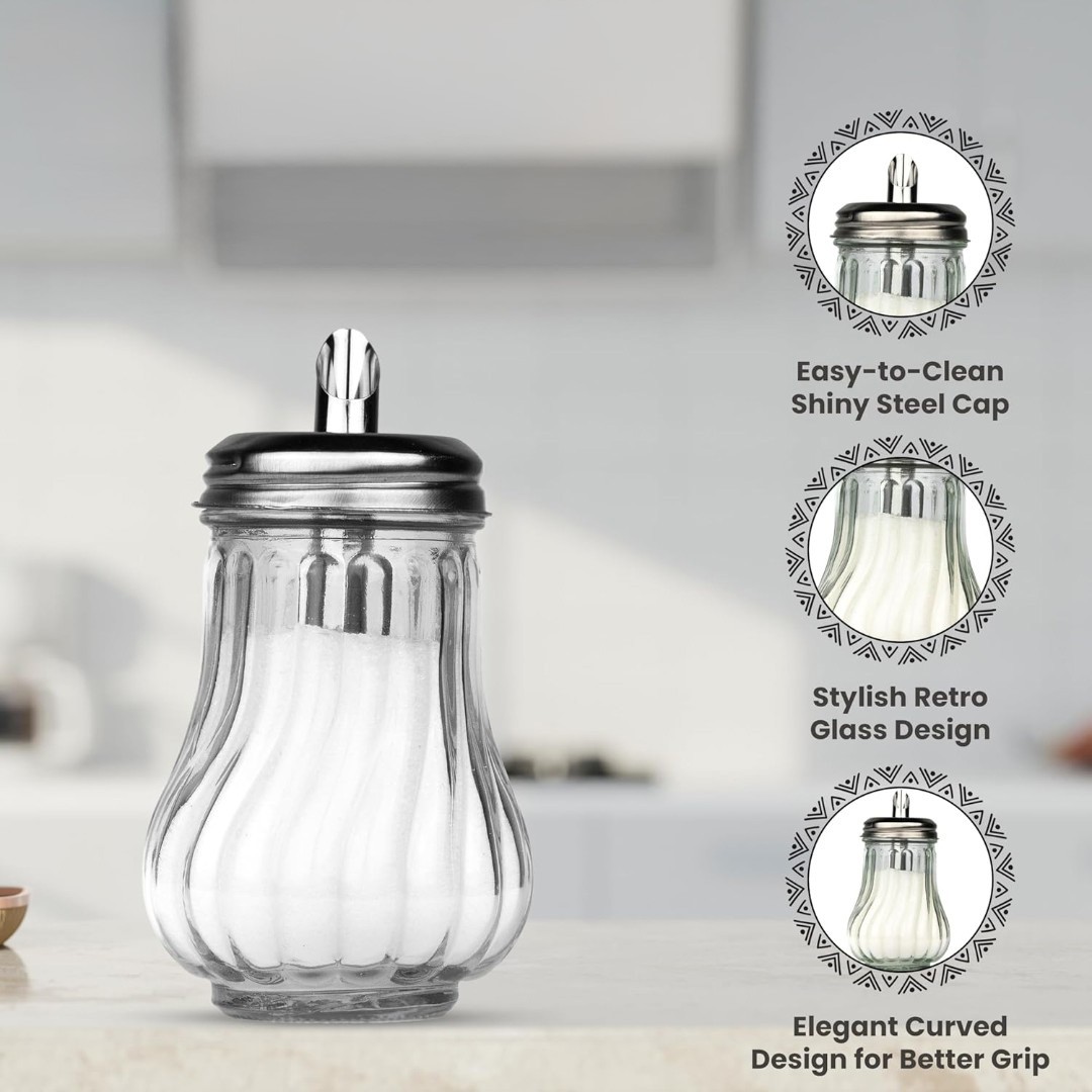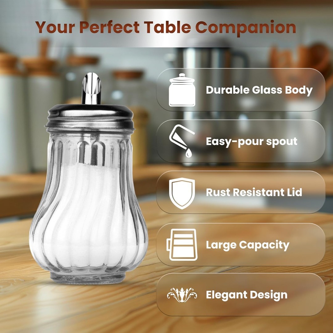 Durable Glass Sugar Dispenser: Made from high-quality thick glass that is strong, durable, and ideal for storing sugar while allowing easy visibility of the contents inside.