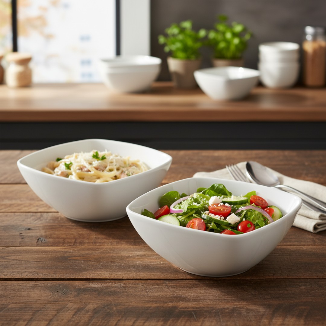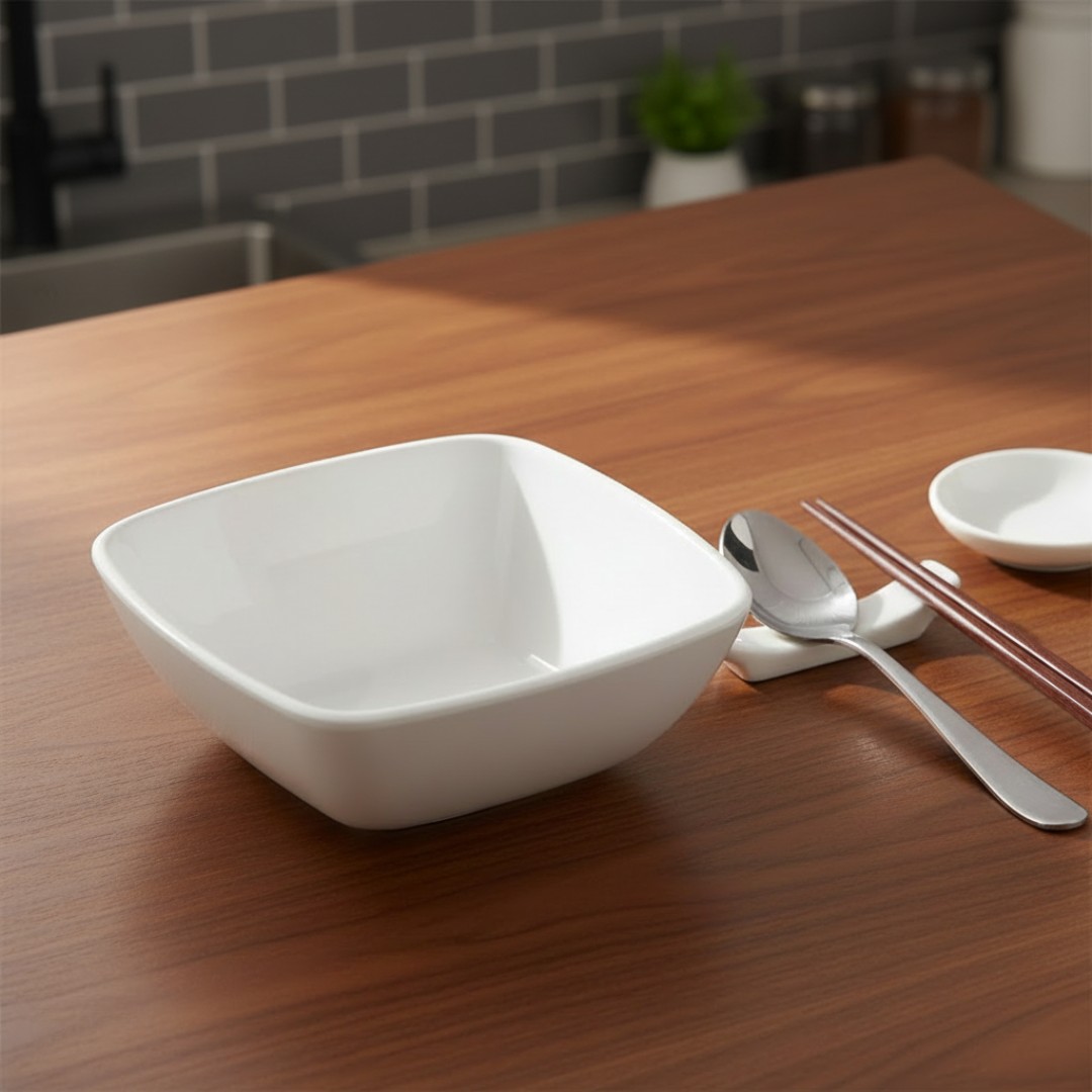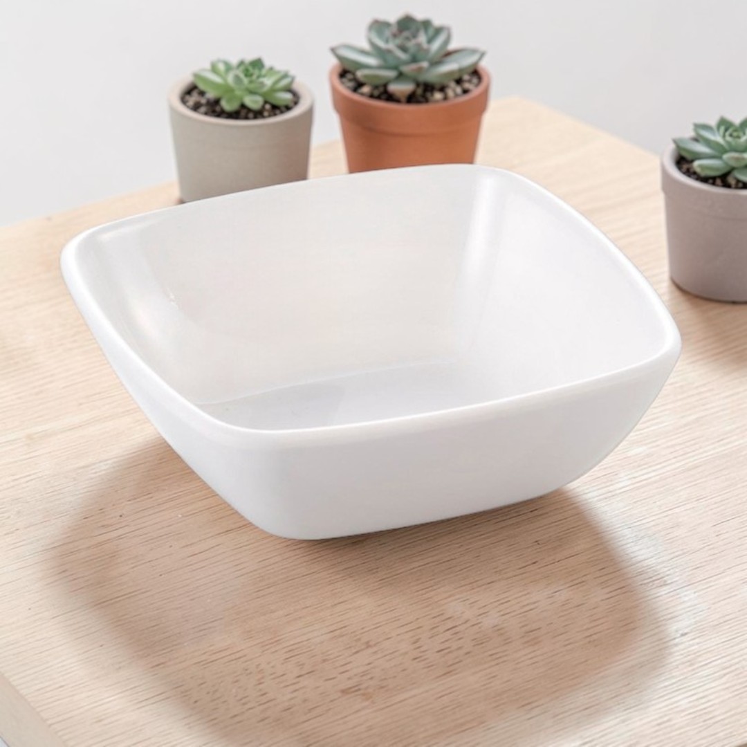Modern Square Bowl Design: Features a stylish square shape with smooth curved edges that adds a contemporary touch to dining tables, kitchens, and food presentations.