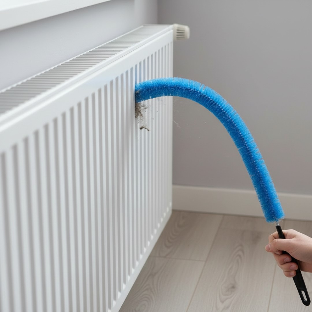 Slim Space-Saving Design: The thin cylindrical shape allows the brush to slide easily between tight gaps like radiator fins, narrow bottles, pipes, and appliances.