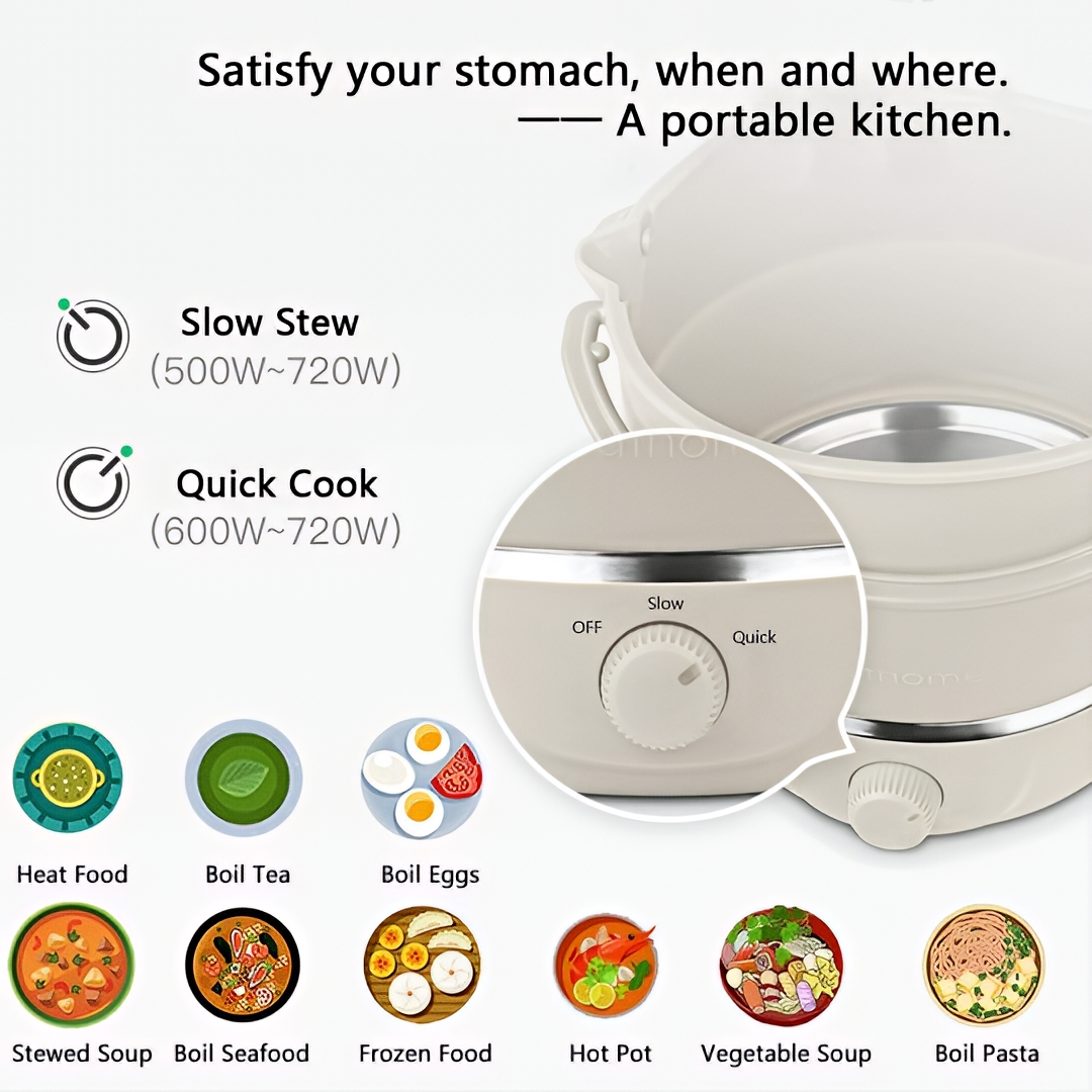 Portable Kitchen Anywhere: Designed as a convenient mini electric cooker for travel, business trips, dormitories, and small apartments where a compact cooking solution is needed.