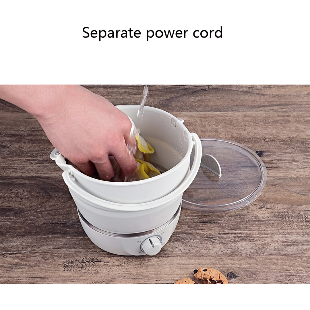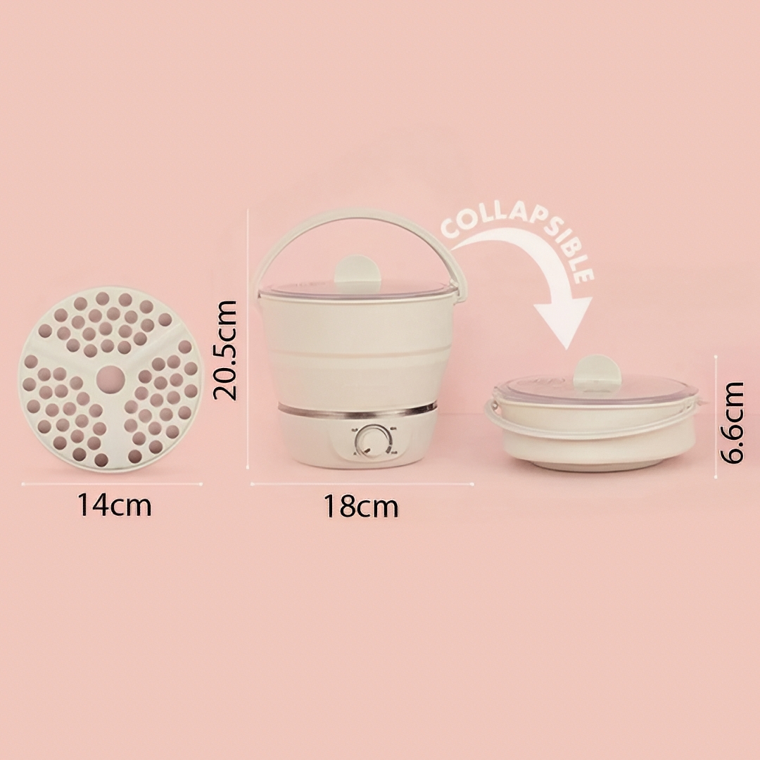 Collapsible Space-Saving Design: The smart foldable structure allows the pot to collapse into a compact size, making it easy to store in small kitchens, dorm rooms, luggage, or travel bags.