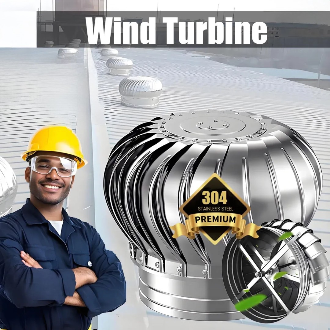 Efficient Wind-Powered Roof Ventilator: Designed to improve air circulation by using natural wind energy to extract hot air, smoke, and humidity from buildings without requiring electricity.