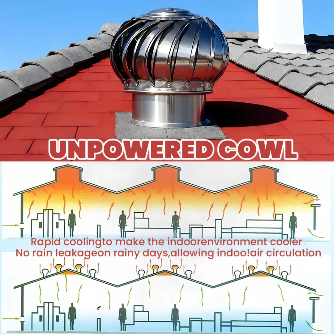 Automatic Rotating Turbine System: The aerodynamic turbine blades spin with the wind to continuously pull hot air out of roofs, helping maintain a cooler and fresher indoor environment.