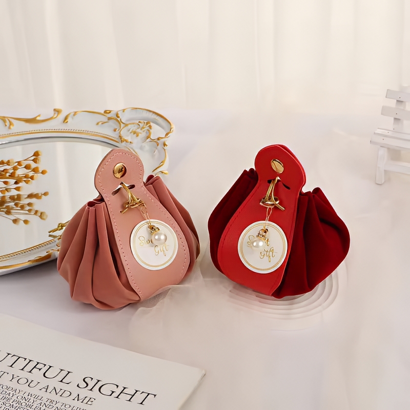 Elegant Mini Gift Pouch Design: Stylish small pouch with a beautiful pleated design that creates a luxurious and decorative look, perfect for presenting gifts in an elegant way.