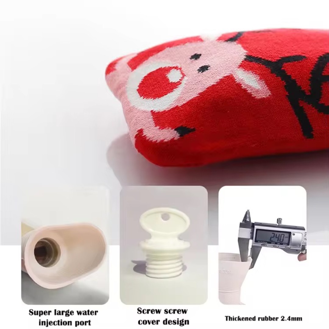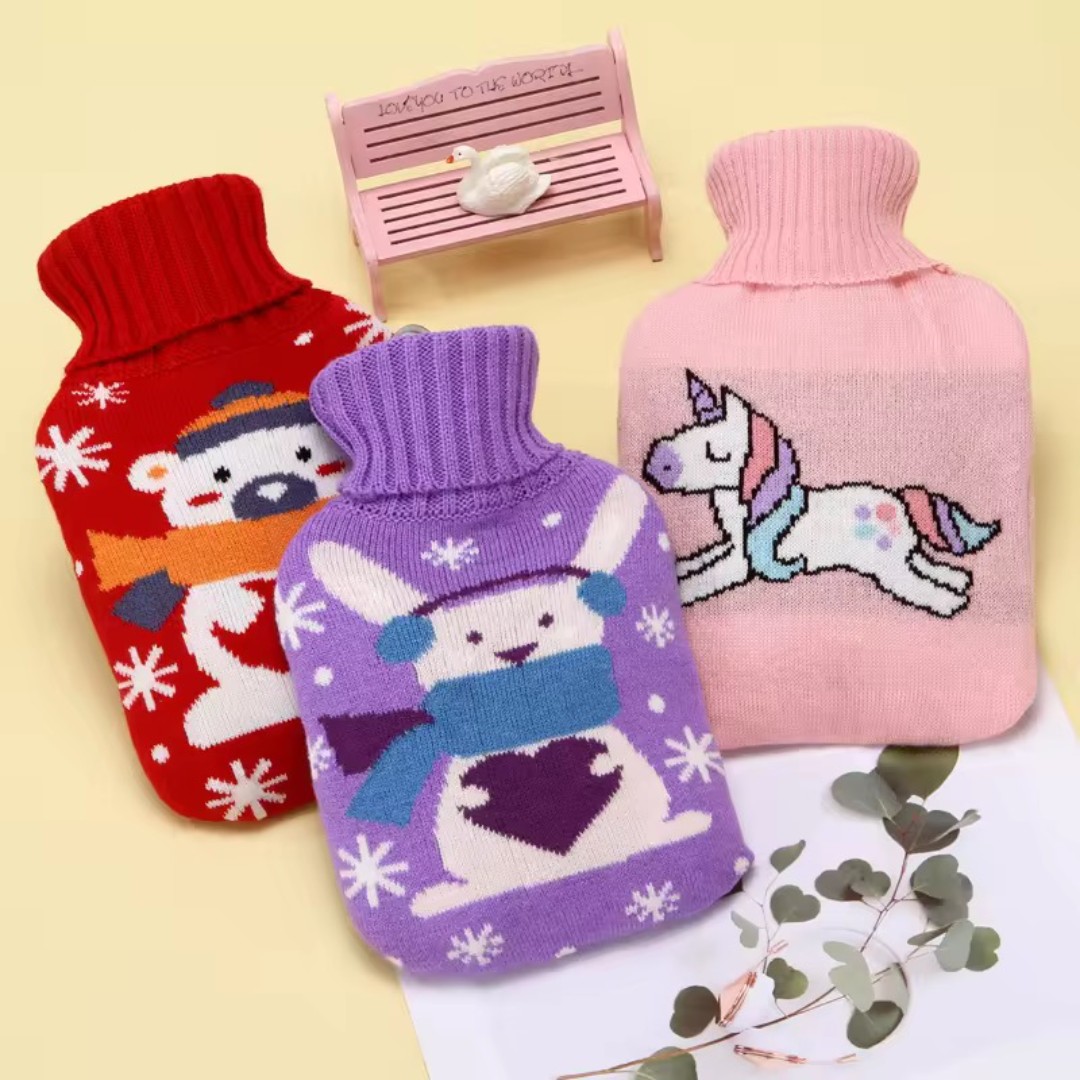 Cute Knitted Protective Cover: Comes with a soft knitted fabric cover featuring adorable cartoon designs that adds insulation, prevents direct heat contact, and improves comfort.