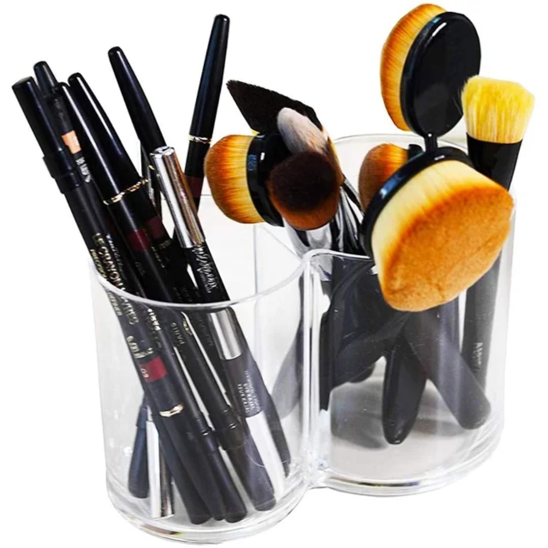 Dual Compartment Organizer: Features two separate storage sections, perfect for organizing cotton pads, cotton swabs, makeup brushes, or small beauty essentials in one compact unit.