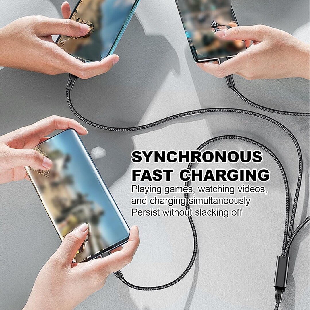 Multi-Device Charging Design: 3-in-1 cable allows simultaneous charging of multiple devices, making it perfect for phones, tablets, and other gadgets with different ports.