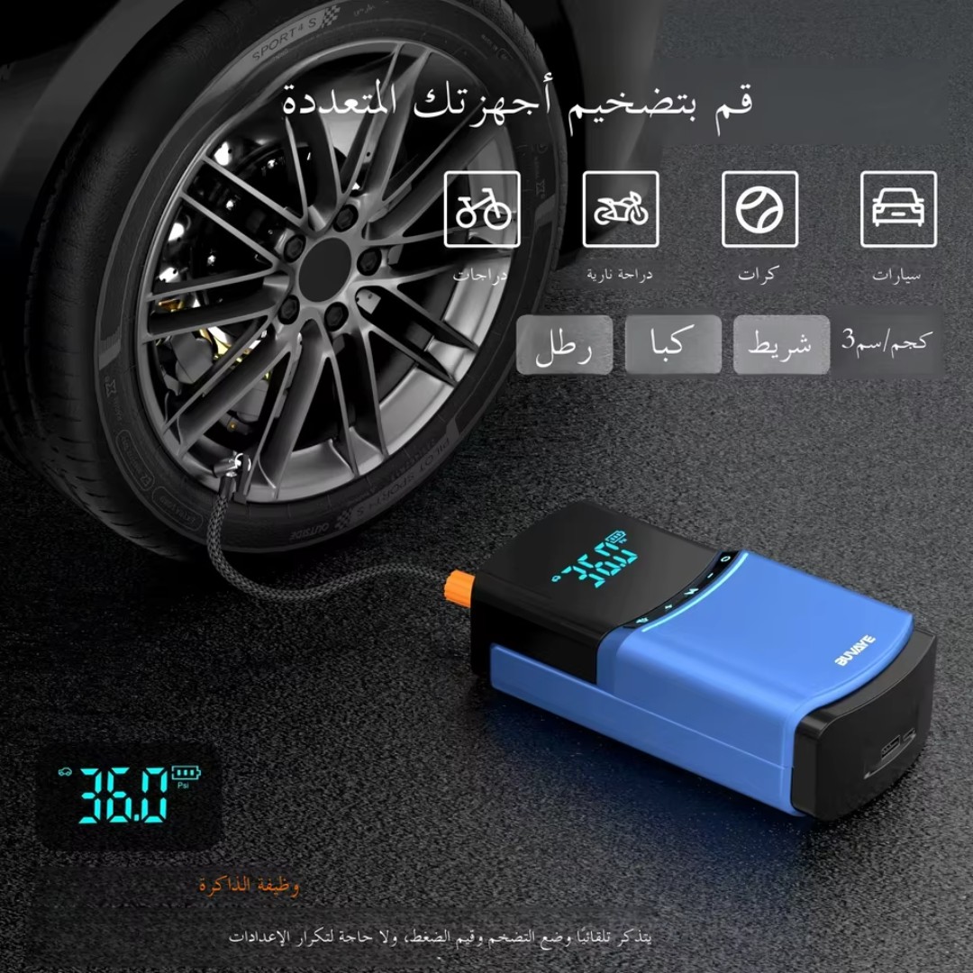 Digital Air Compressor System: Built-in tire inflator with smart digital display supports PSI/BAR/KPA units, allowing precise and fast tire inflation anytime.