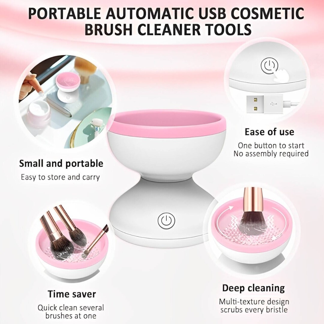 Automatic Deep Cleaning System: Equipped with a powerful motor that creates a gentle swirling motion to deeply clean makeup brushes, removing dirt, oils, and residue effectively.