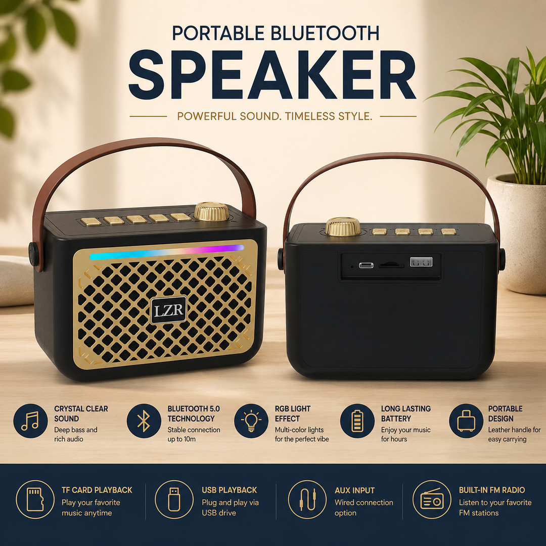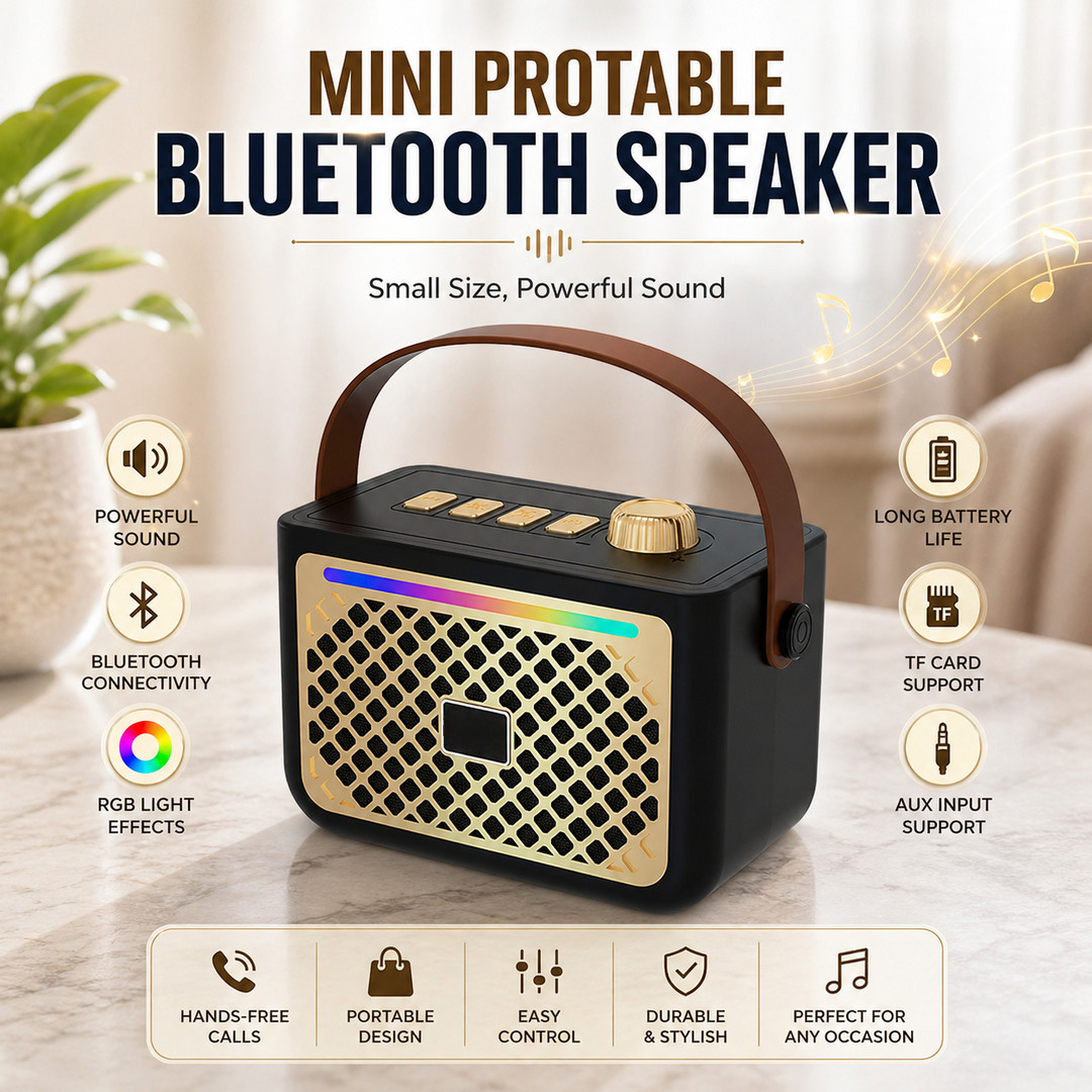 Portable Compact Design: Lightweight and mini-sized speaker with a built-in handle, making it easy to carry anywhere for music on the go.